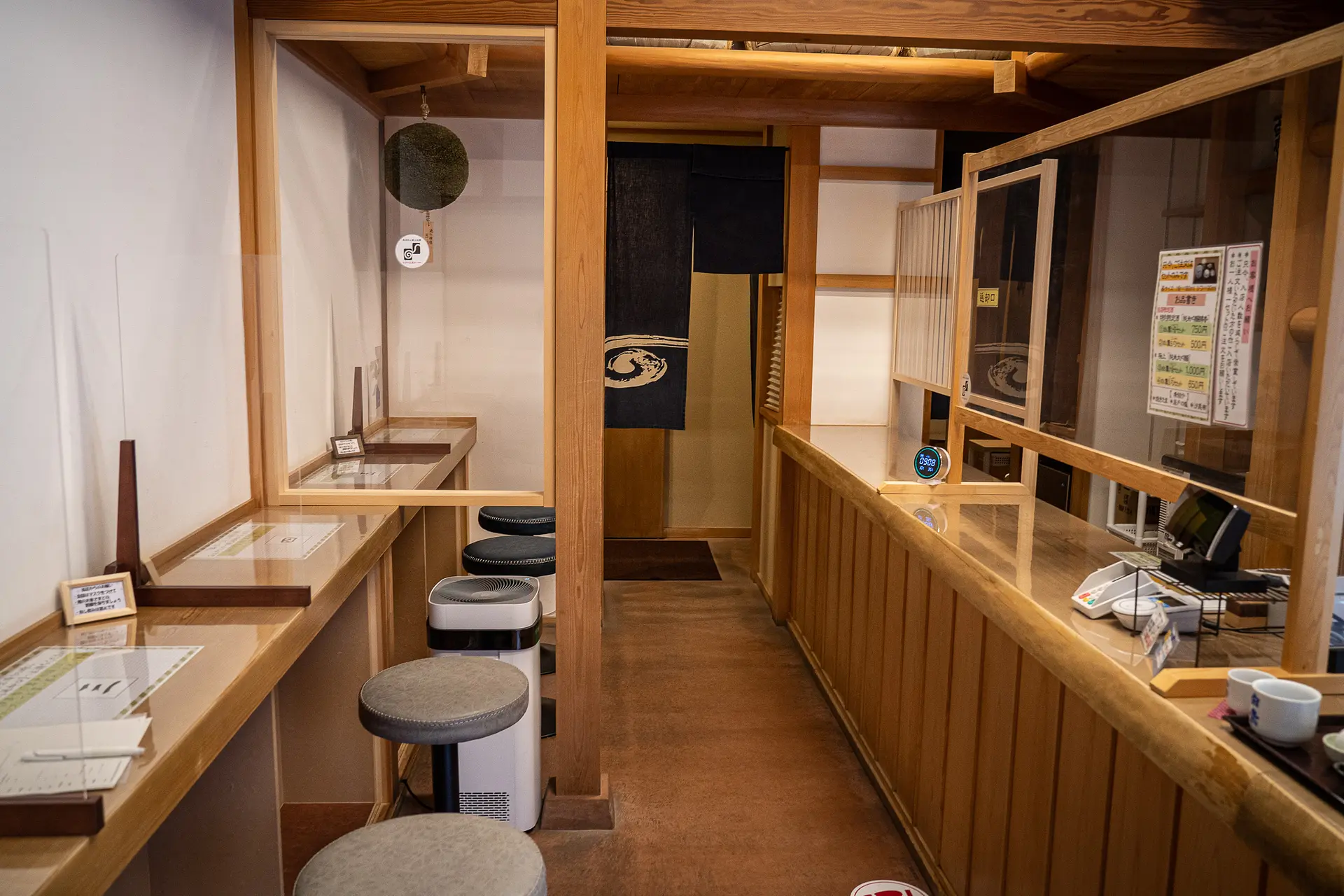 コロナ禍以前は、「立ち飲み酒屋」としてたくさんの人で賑わうお店でしたが、現在は感染症対策のために営業スタイルを一新。カウンターには一定の間隔を確保した座席とパーテーションが設置されており、現在はお客様が着席してお酒や肴を味わう飲食店として営業されています。