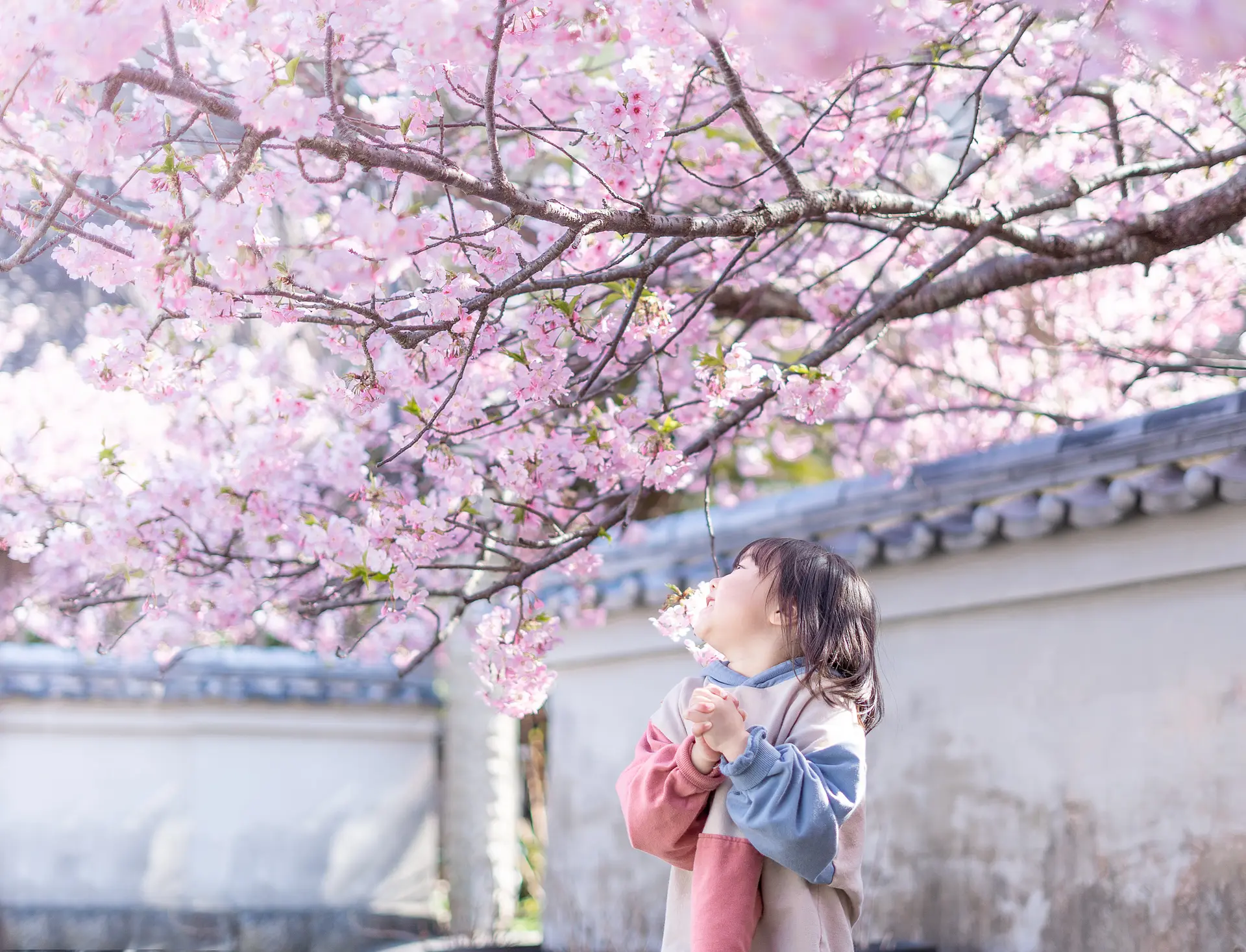 3歳の娘は、触れることができる程の高さで可憐に咲く桜に大興奮でした。