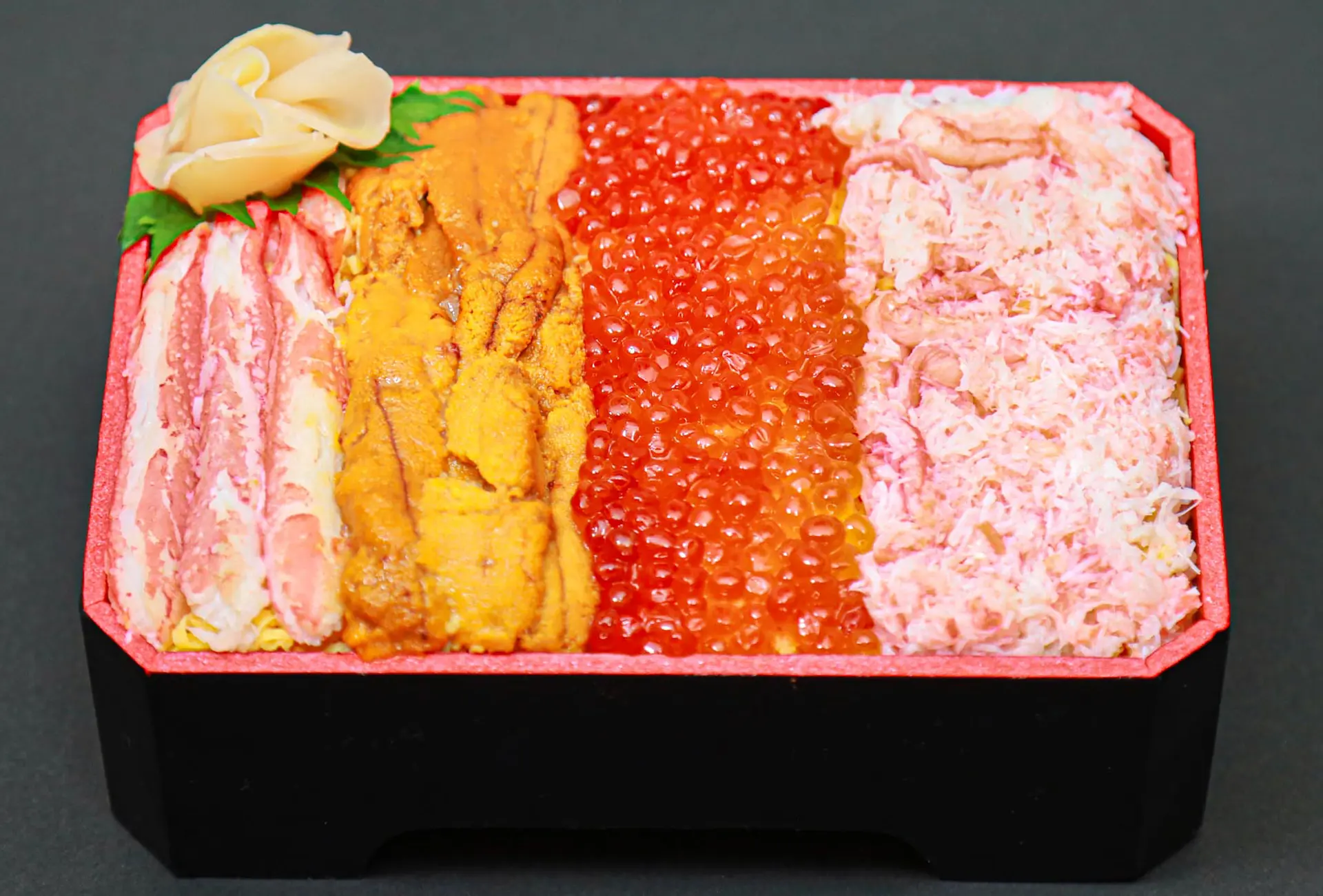 贅沢海鮮ちらし寿司は、お店で人気の蟹・いくら・うにを盛ったお弁当で、口いっぱいに広がる海の幸を楽しめます。