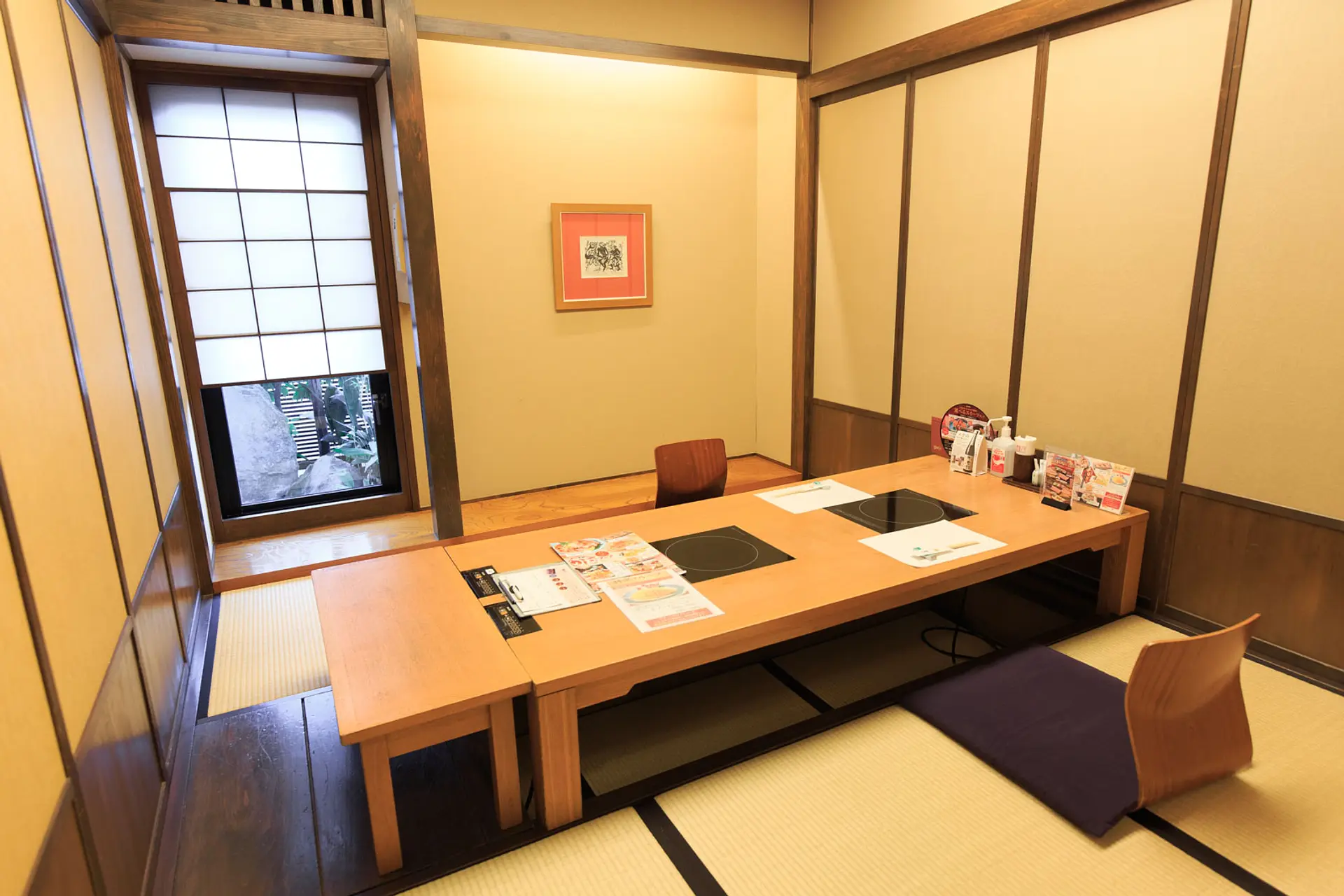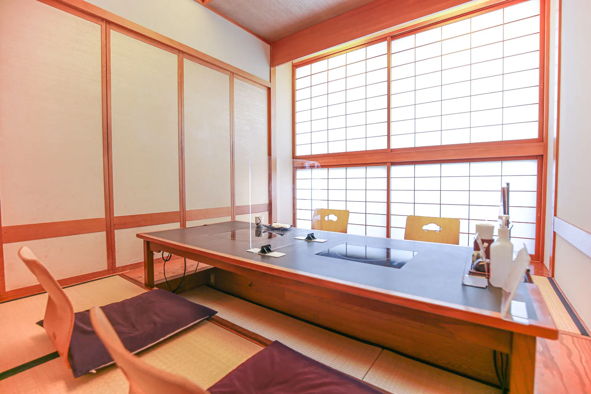 丁寧な接客と客席へのご案内、趣きを感じられる和の客席はまるで旅館にいるような気分を味わえます。