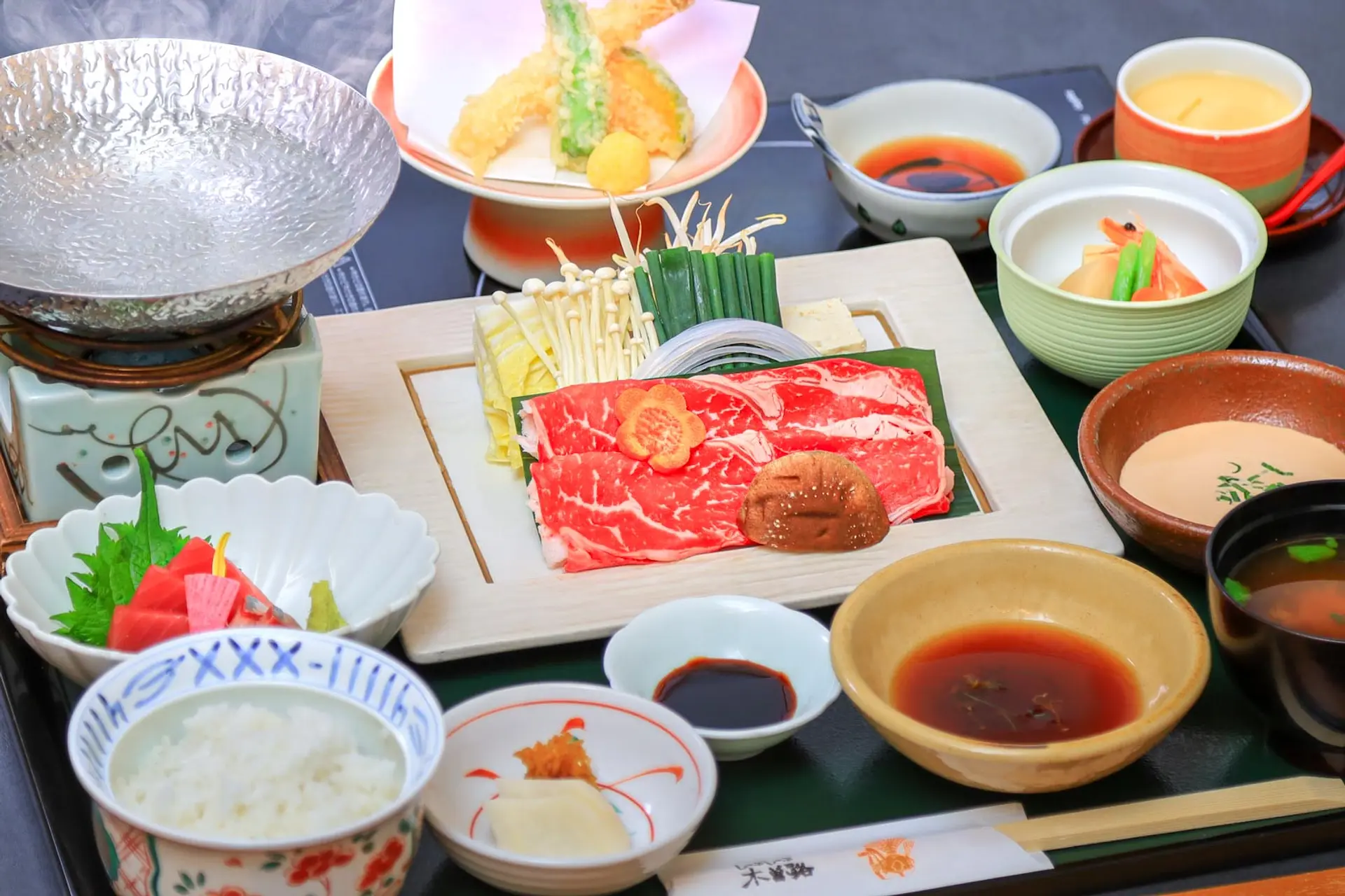 今回の取材では国産牛ロース肉と季節折々の食材を味わえる「山吹」を堪能しました。