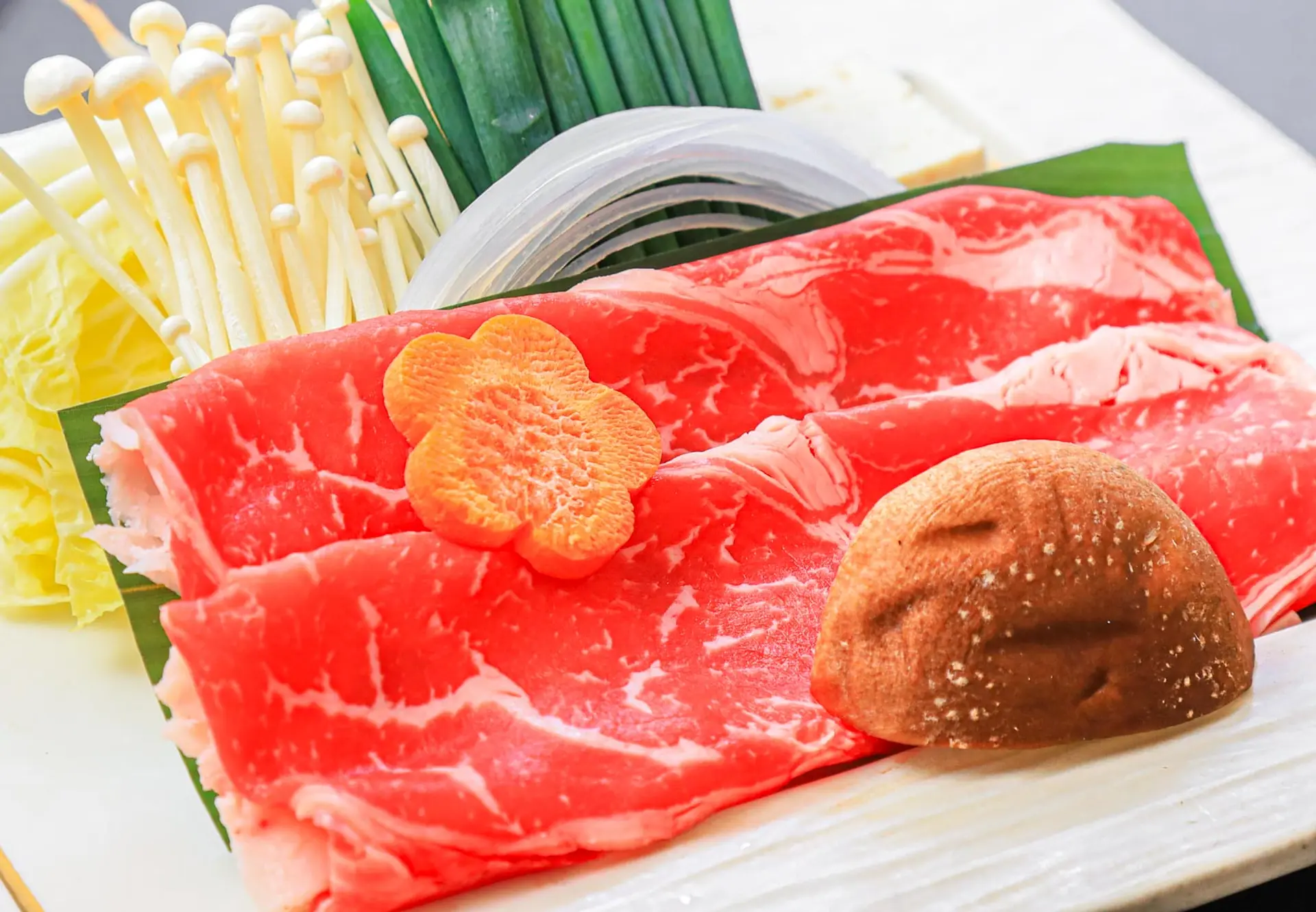 提供するお肉は木曽路の基準を満たすものを全国各地から選び、旬の野菜とお肉に合う惣菜を組み合わせたコースでしゃぶしゃぶを満喫できます。