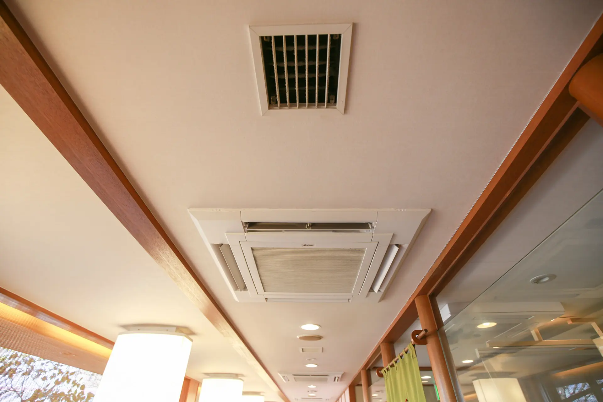木曽路全店舗の取組みとして、外気を取り入れる換気システムによって10分に1回の空気の入れ替えを行っています。