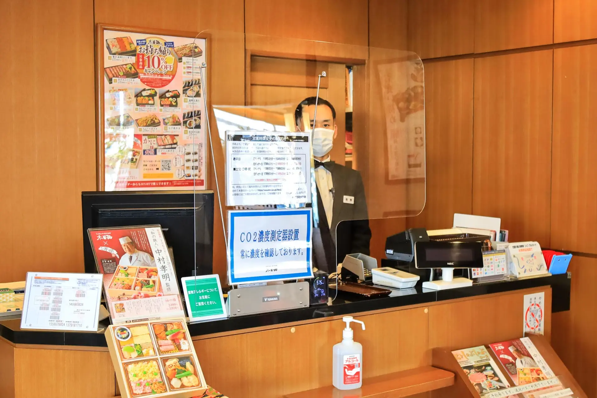 また天井にある換気口や、店舗入口の二重扉は定期的に開放、レジ付近には二酸化炭素濃度計を置くなど様々な手法を駆使していて、感染症対策にもこだわりを感じられます。