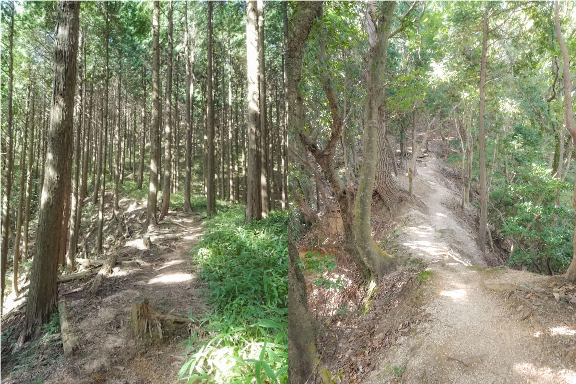 鏡岩の分岐点に戻って、高畑山の山頂を目指します。ここからしばらくの間、木々に囲まれた道と尾根道を歩くのですが、登山道が整備されているので歩きやすいですよ。