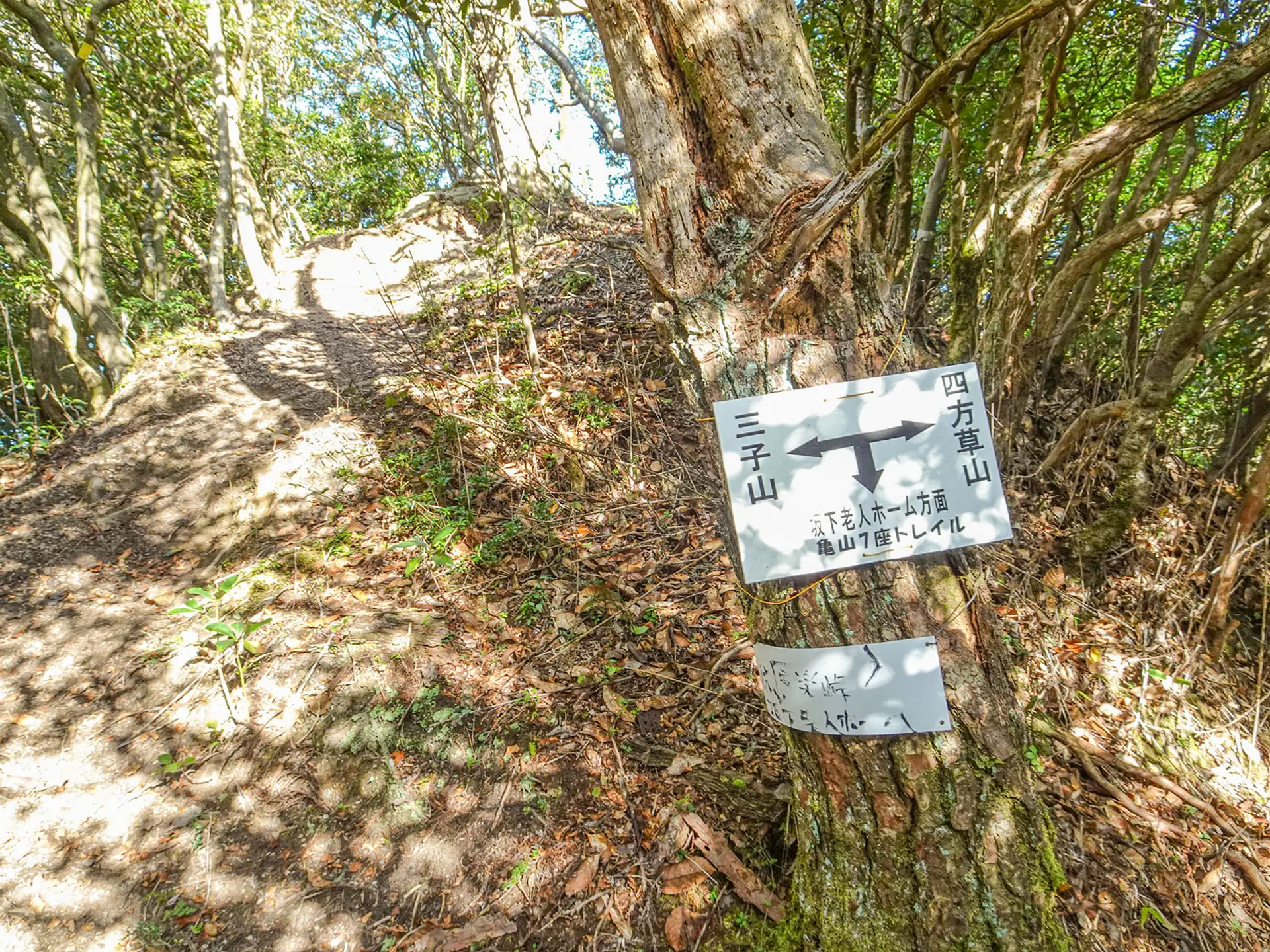 四方草山は北峰・南峰からなり、亀山7座の三子山を経由して行ける山です。登山道には痩せ尾根やキレットなどの難所が多い山ですが、南峰からの見晴らしは好展望です。この記事では三子山を経由した登山コースをご紹介。