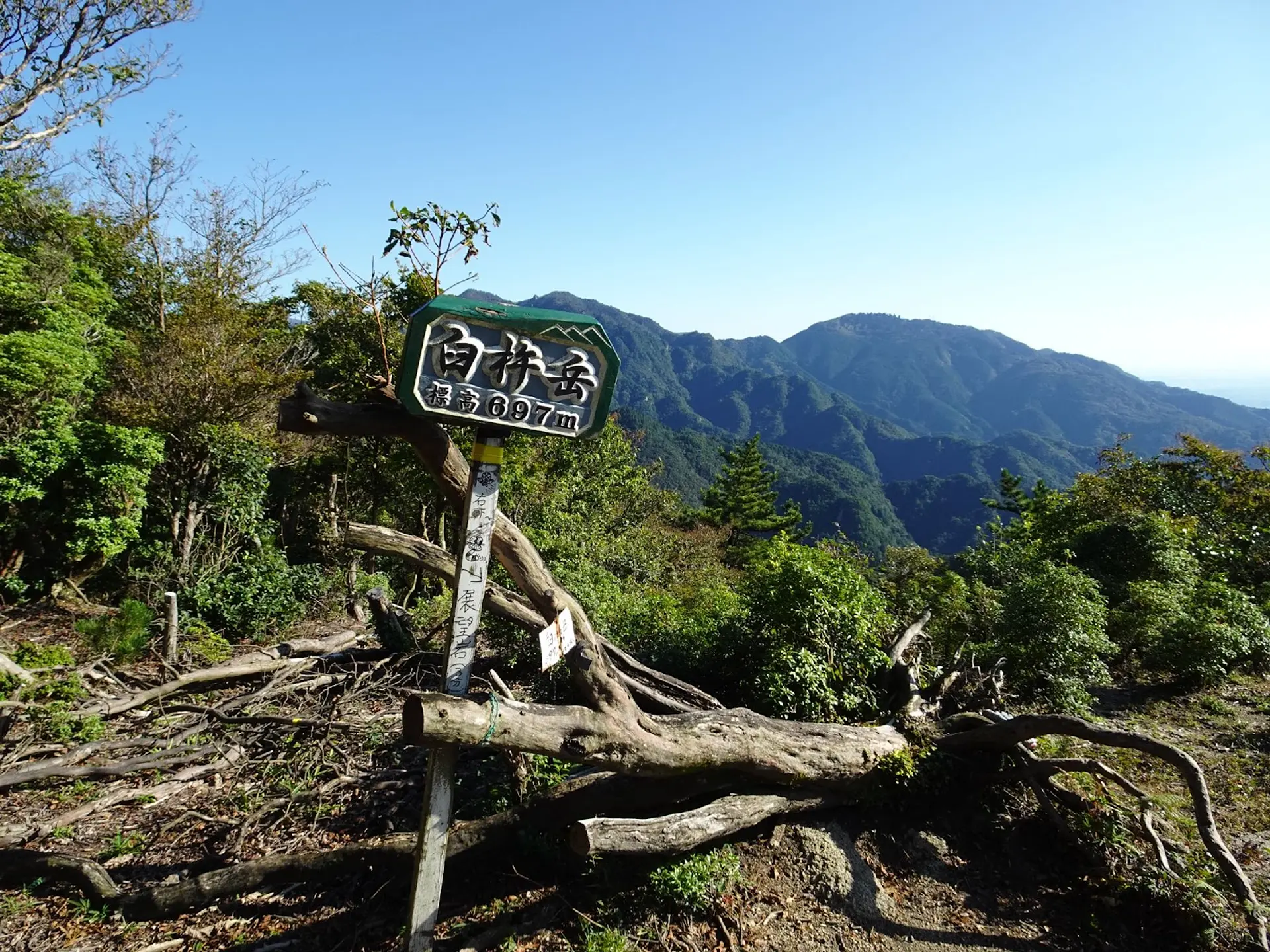 登山口からあわせて1時間40分ほど歩いて臼杵ヶ岳の山頂に到着。足場が広く、見晴らしも良いので食事休憩に最適な場所です。今回はこの先にある展望岩で食事休憩を取ります。