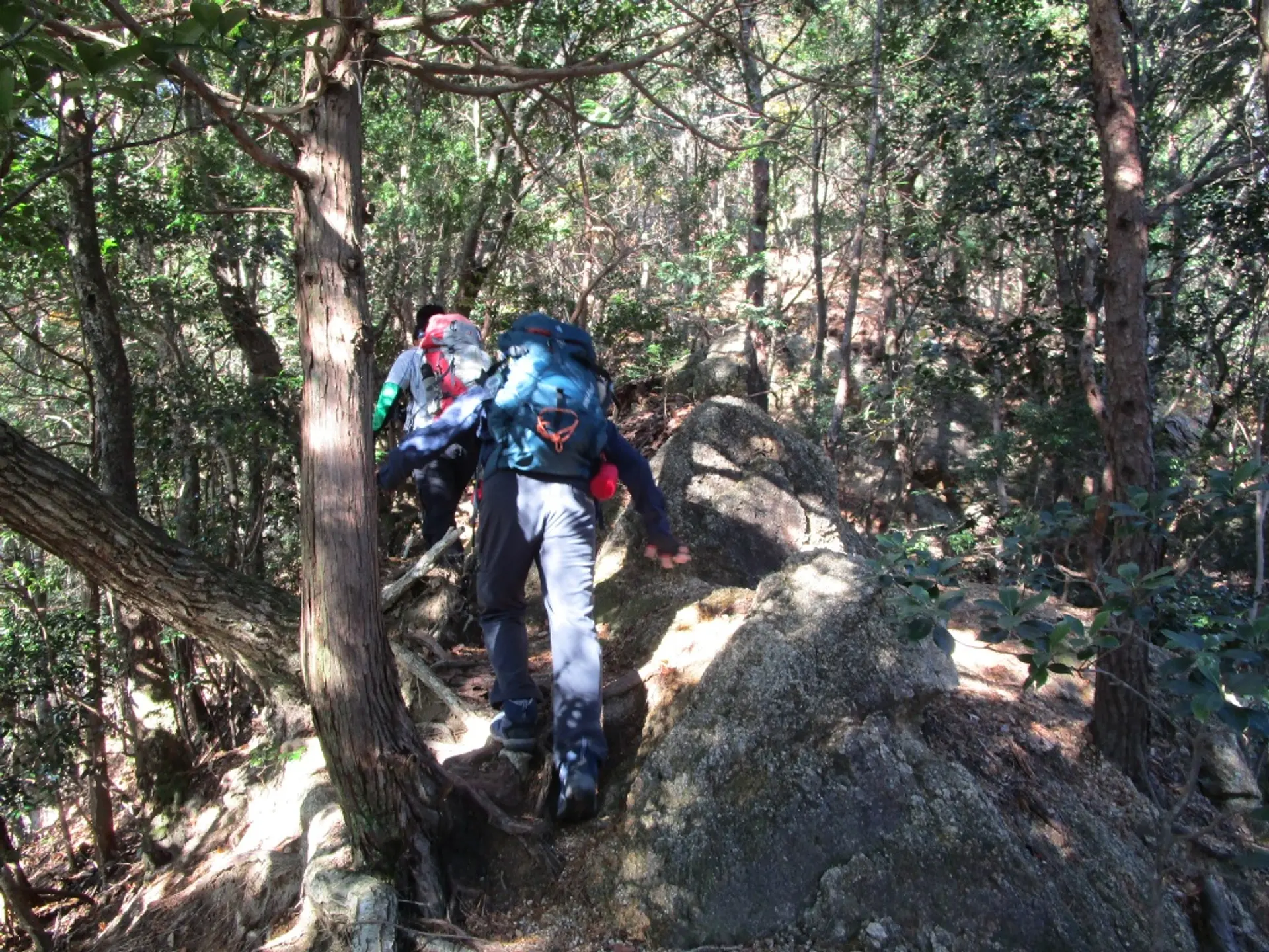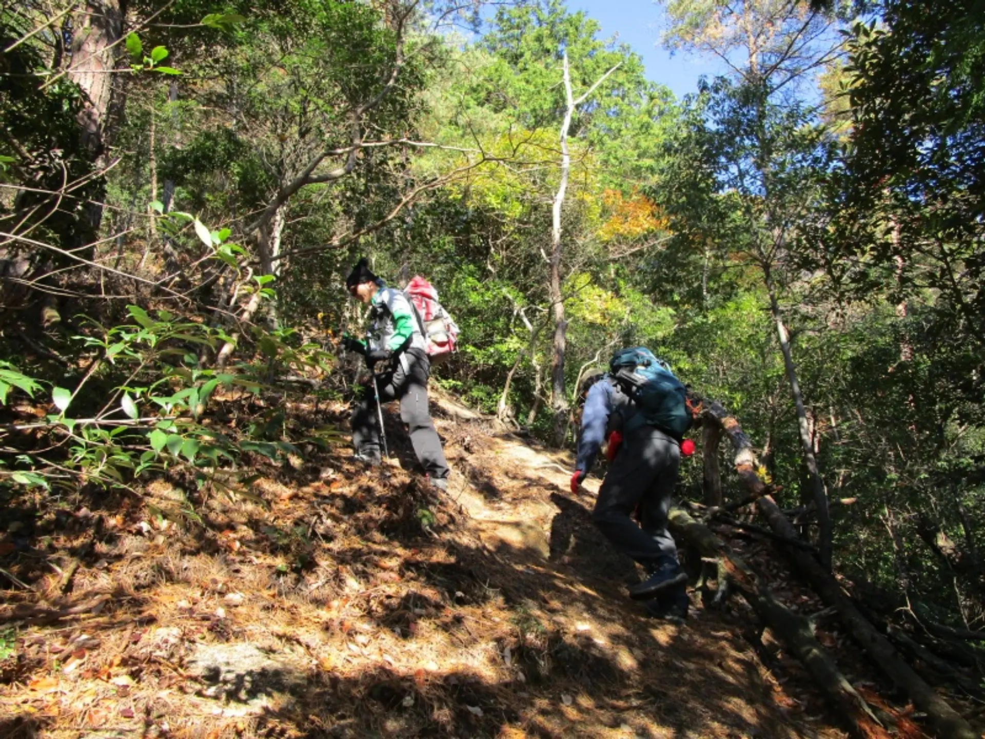 登山口から約30分歩くと急登の尾根道が続き、足場の不安定な岩場もあるため難易度は中級〜上級クラスだと思います。