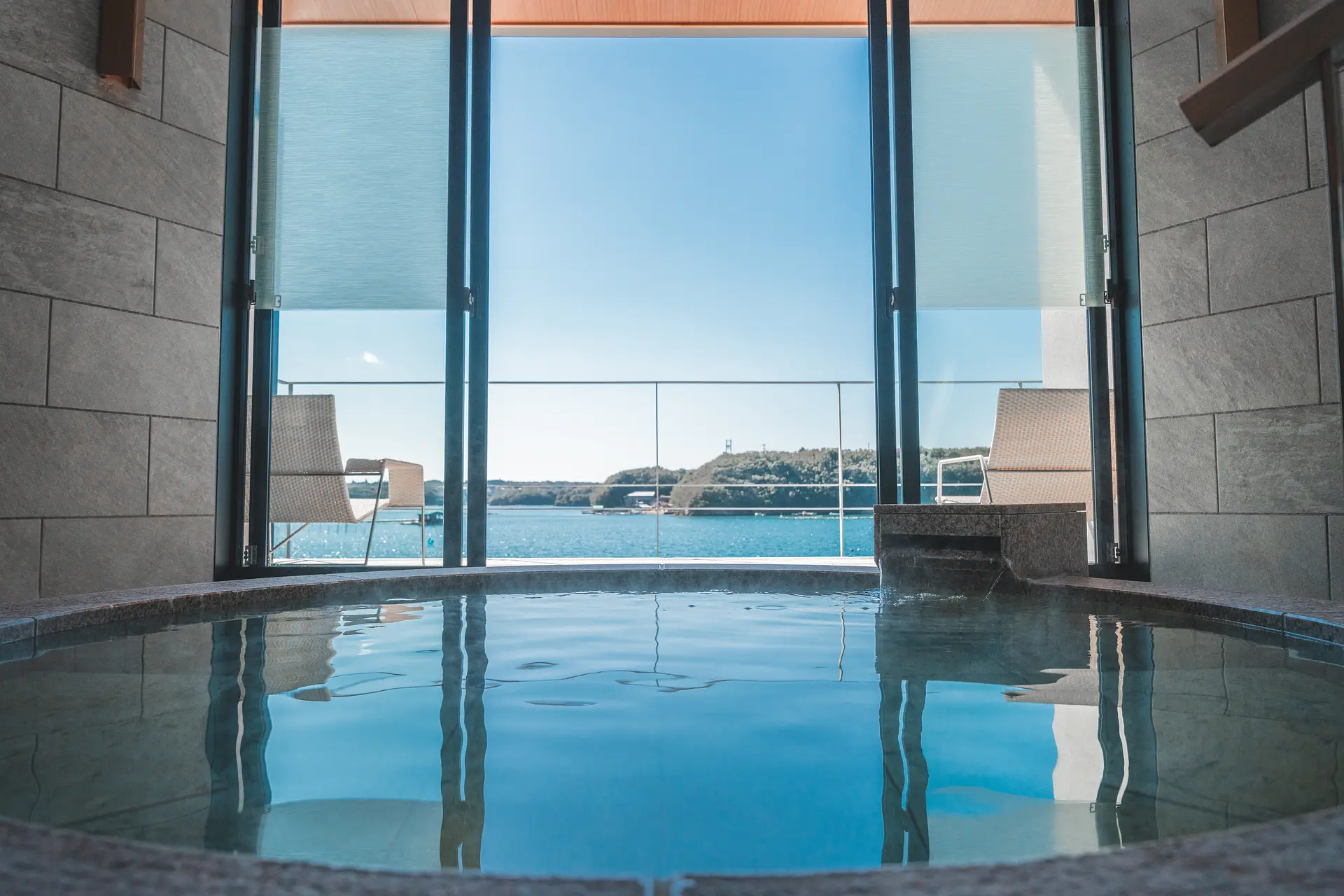 敷地内から湧き出る伊勢志摩賢島温泉の泉質は、肌に優しく、保温・保湿効果があるもの。