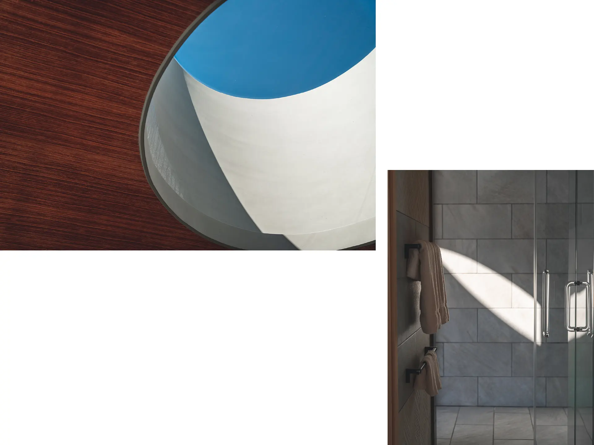 お風呂に浸かって天井を見上げると、天窓からは丸く切りとられた空が見えます。夜は煌めく星空を眺めて、ゆっくり過ごすのも良いですね。