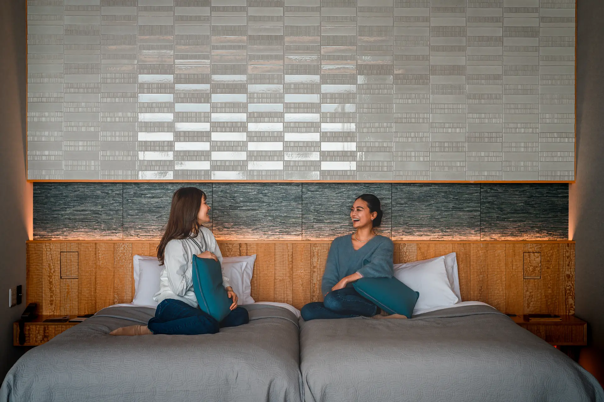 漣のはなれの寝具は、睡眠改善コーディネーターが監修。ベッドパットは、ヨーロッパで古くから最上級の寝具素材とされてきた馬毛が使用されており、掛け布団には、冬は暖かく夏は涼しいアルパカの毛が使用されています。快適な寝心地を堪能できるのも、漣のはなれに宿泊する際の楽しみの一つとなりそう。