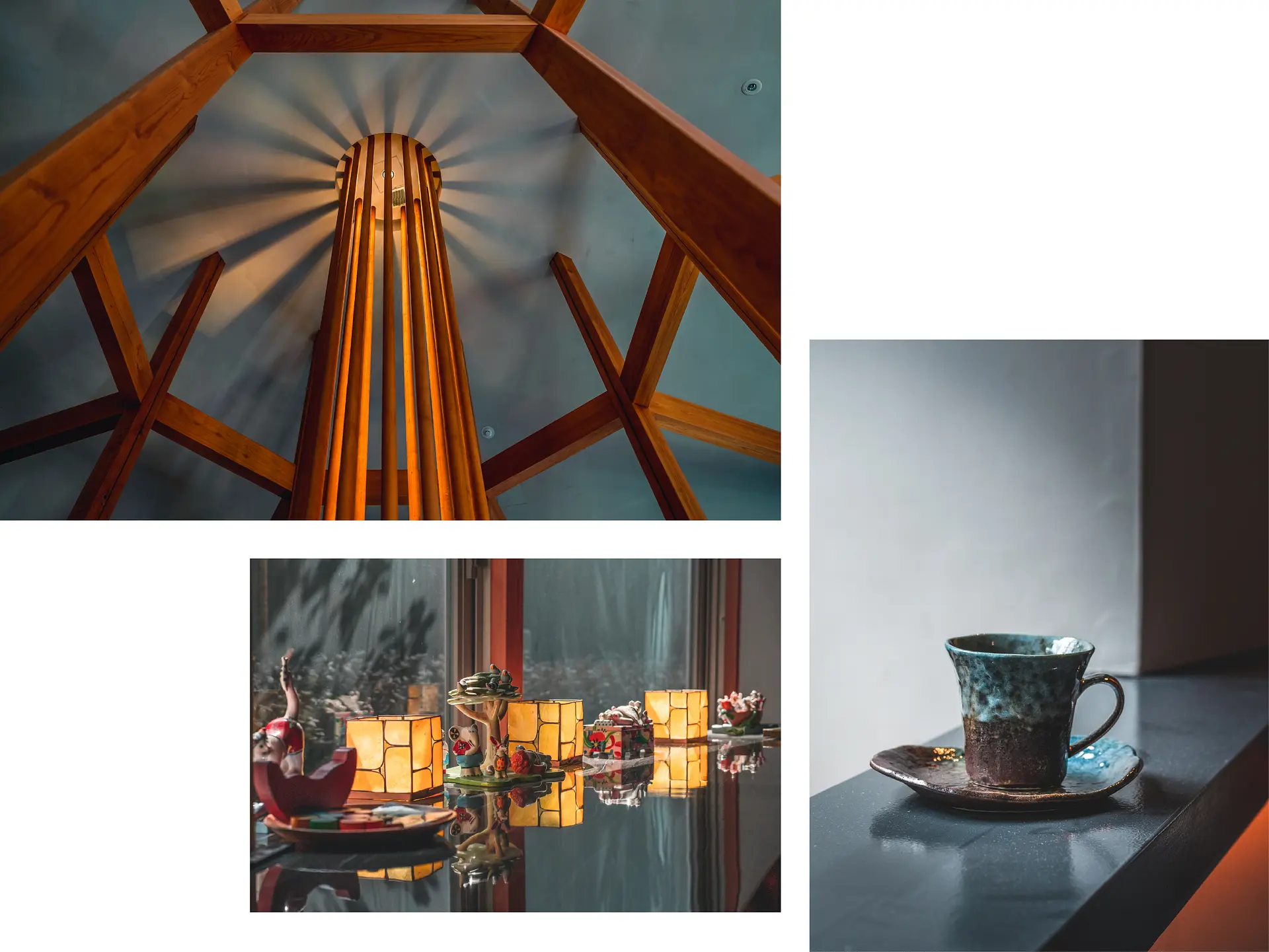 時間帯によって日光の入り方が変わり、外が暗くなってくるとラウンジ内に温かい明かりが灯されます。時の移ろいを感じられるのが、時の家aoiの魅力ですね。