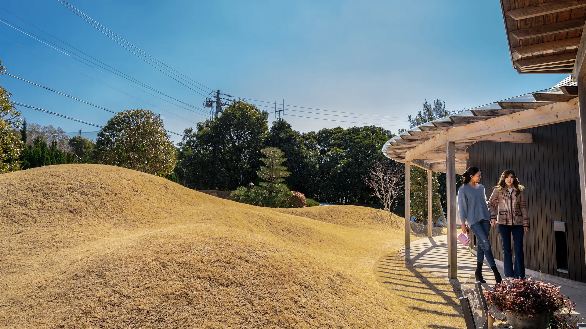 「漠の庭」は、もこもこと膨らんだ形の芝が特徴的なお庭。散策中に足を止めて、漠の庭を眺めながら一息つくのも良いかもしれません。