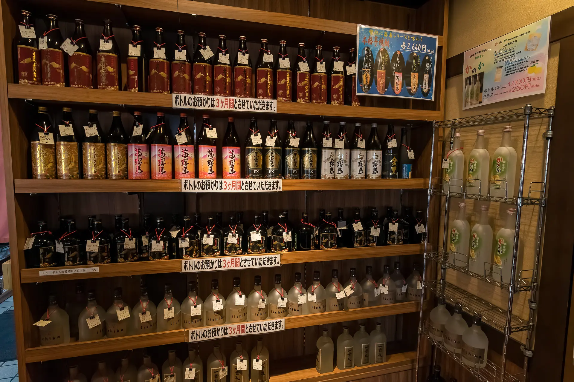 さらに、お酒の取り揃えにもこだわりがあり!霧島焼酎はなんと黒、EX、白、赤、茜、虎斑の6種類が揃い踏みでした。ボトルキープができる(3ヶ月)というのも珍しく、地元のリピーターからも大変好評のようです。