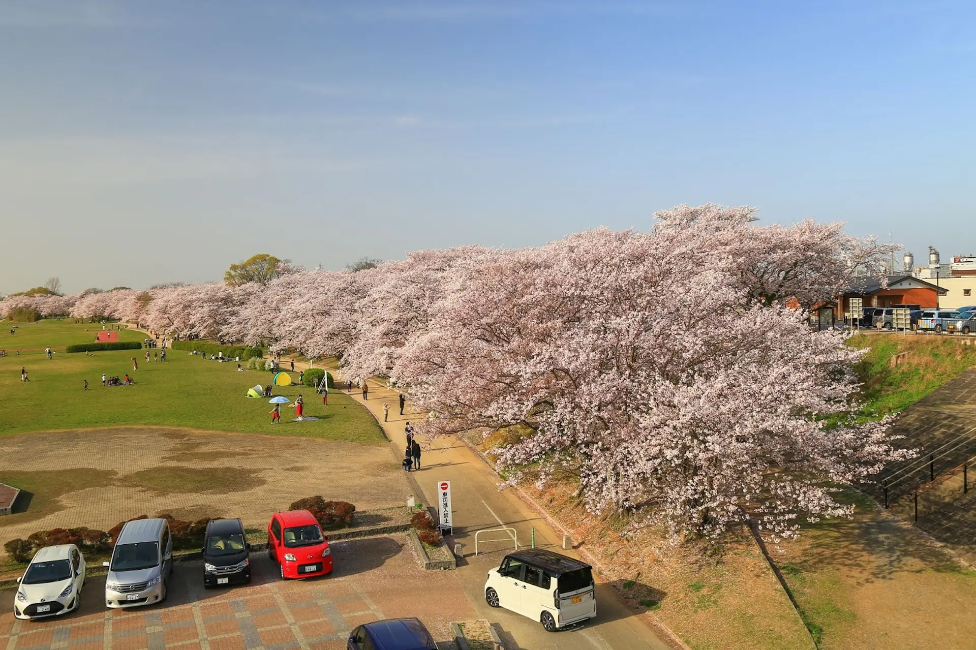 桜が見頃になると宮川堤公園内には約150台の臨時駐車場が開設され、無料で利用できます。※2025年は3月22日(土)〜 4月6日(日)に臨時駐車場を開設予定