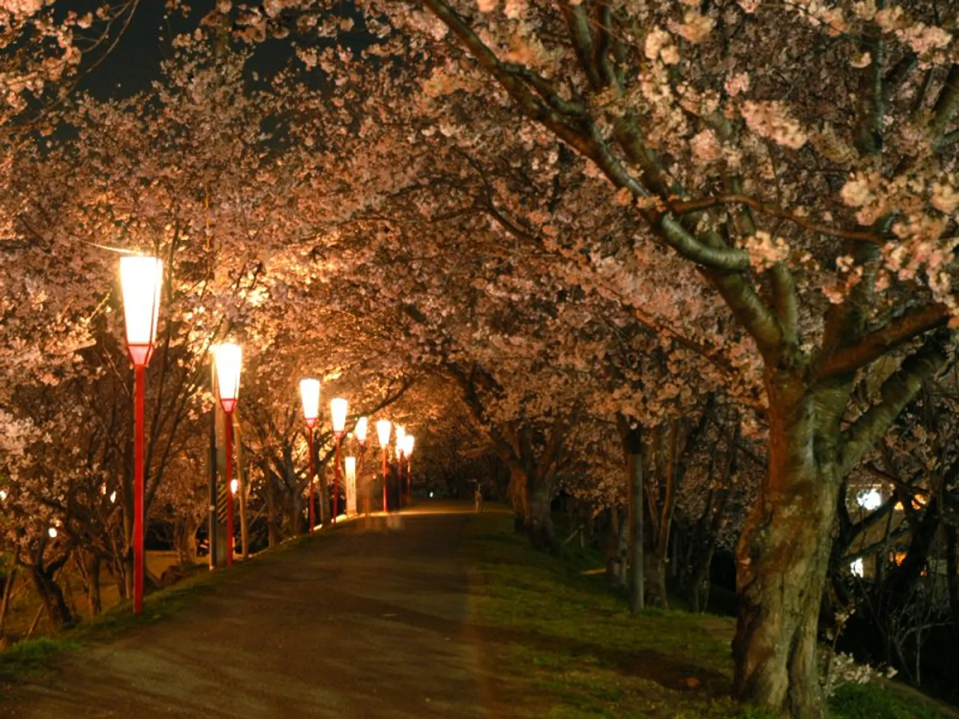 夜は行灯がライトアップされ、夜桜を楽しむことができます。2025年の点灯時間は18時〜21時です。