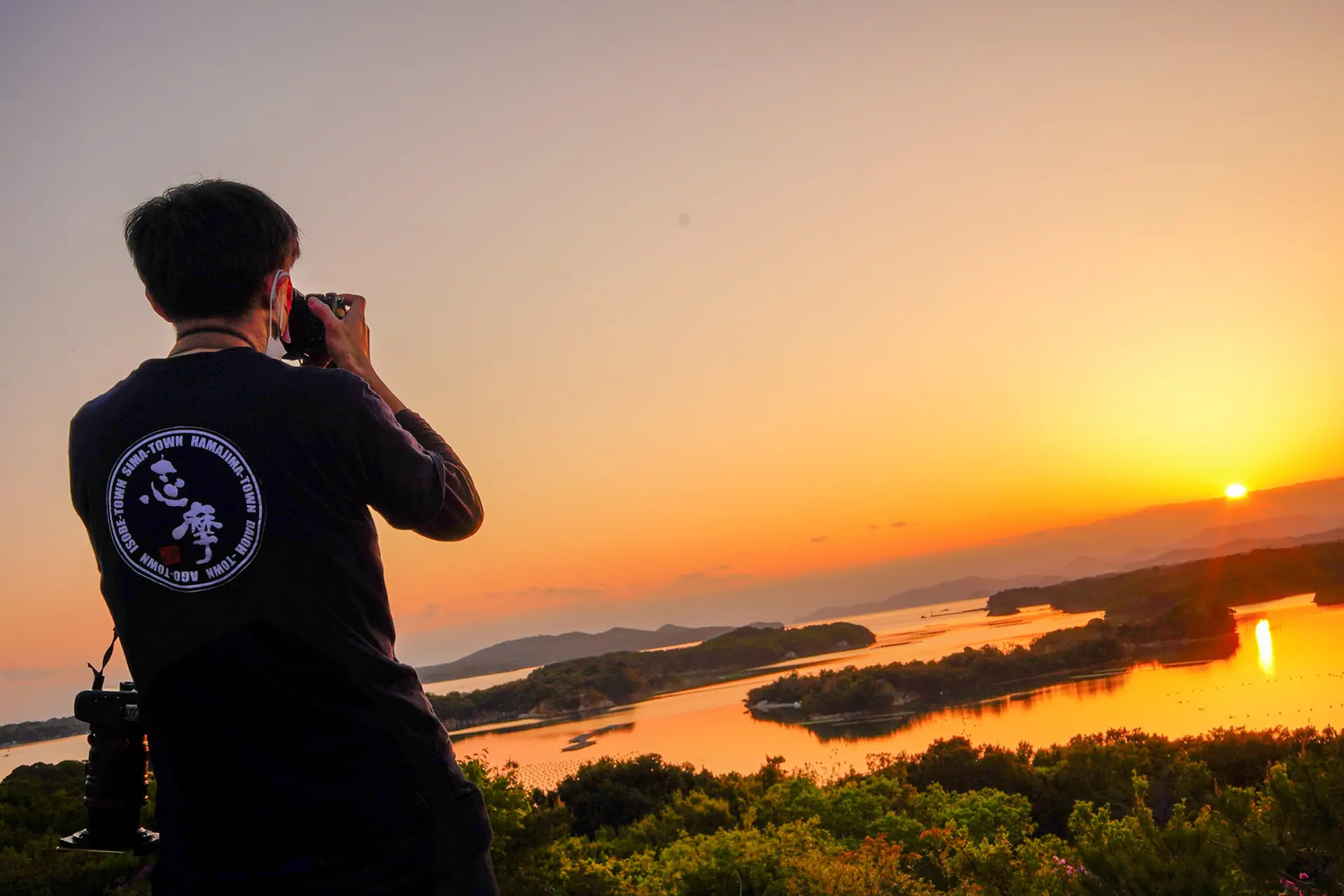 4月〜5月は展望台から中央に見える小島の右側に陽が落ちます。