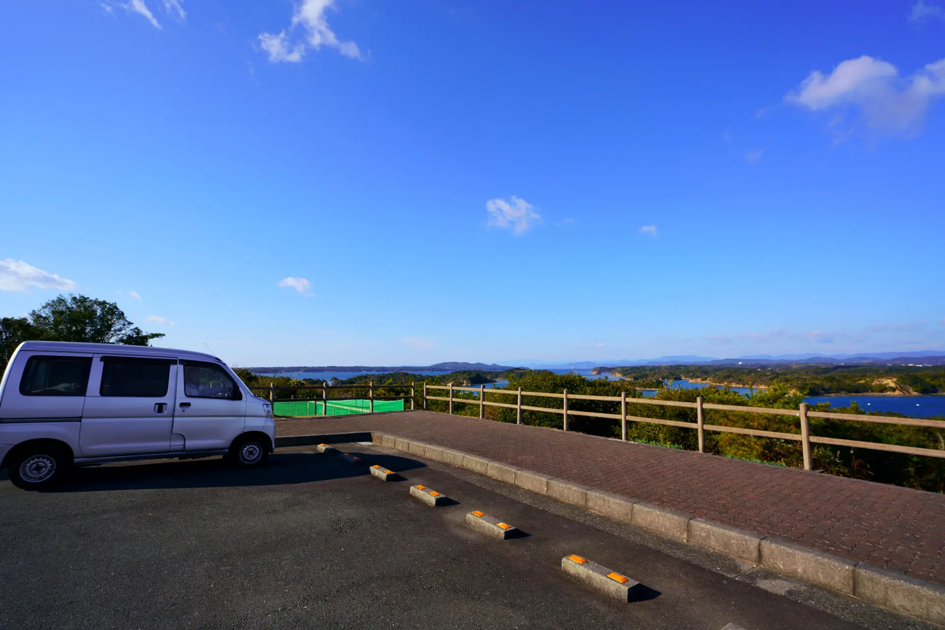 駐車場のすぐ近くに展望台(ウッドデッキ)があり、車内からでも海を観賞できるほど、英虞湾との距離が近いんです。