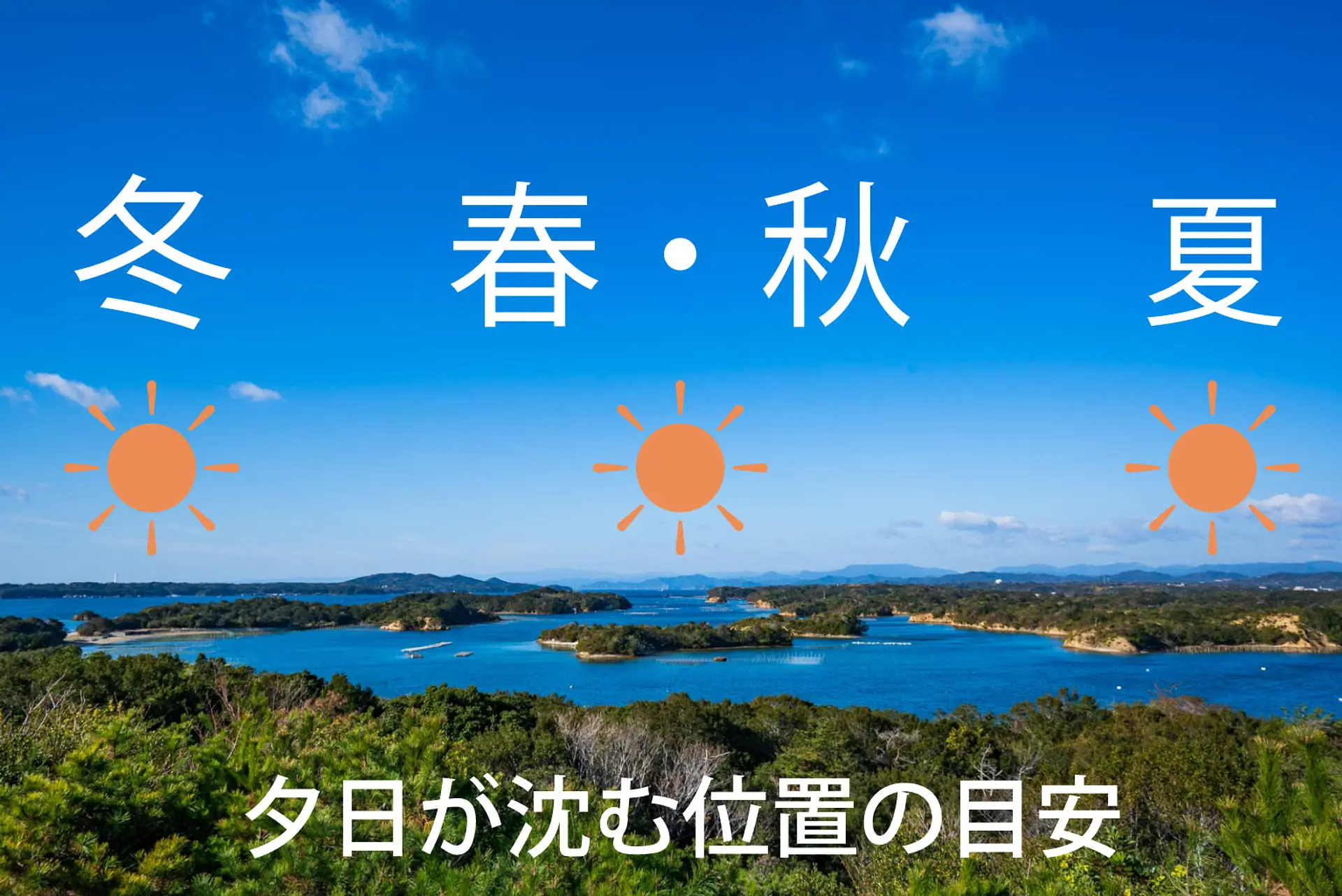ともやま公園の桐垣展望台から夕日を眺める場合、季節によって太陽の沈む位置が変わるのが特徴です。