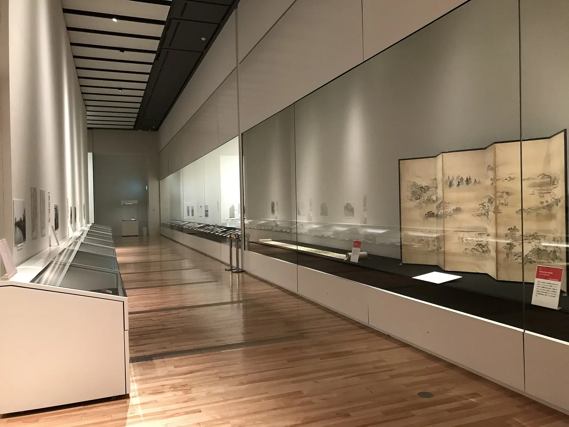 写真ではご紹介できませんが、この展示室奥には洛中洛外図屏風が展示されています。洛中には京の都の街並みと祭礼を含めた人々の活動、洛外には郊外の寺社や景勝地が描かれているそうです。教科書に載っているのを見たことがある人も多いのではないでしょうか。