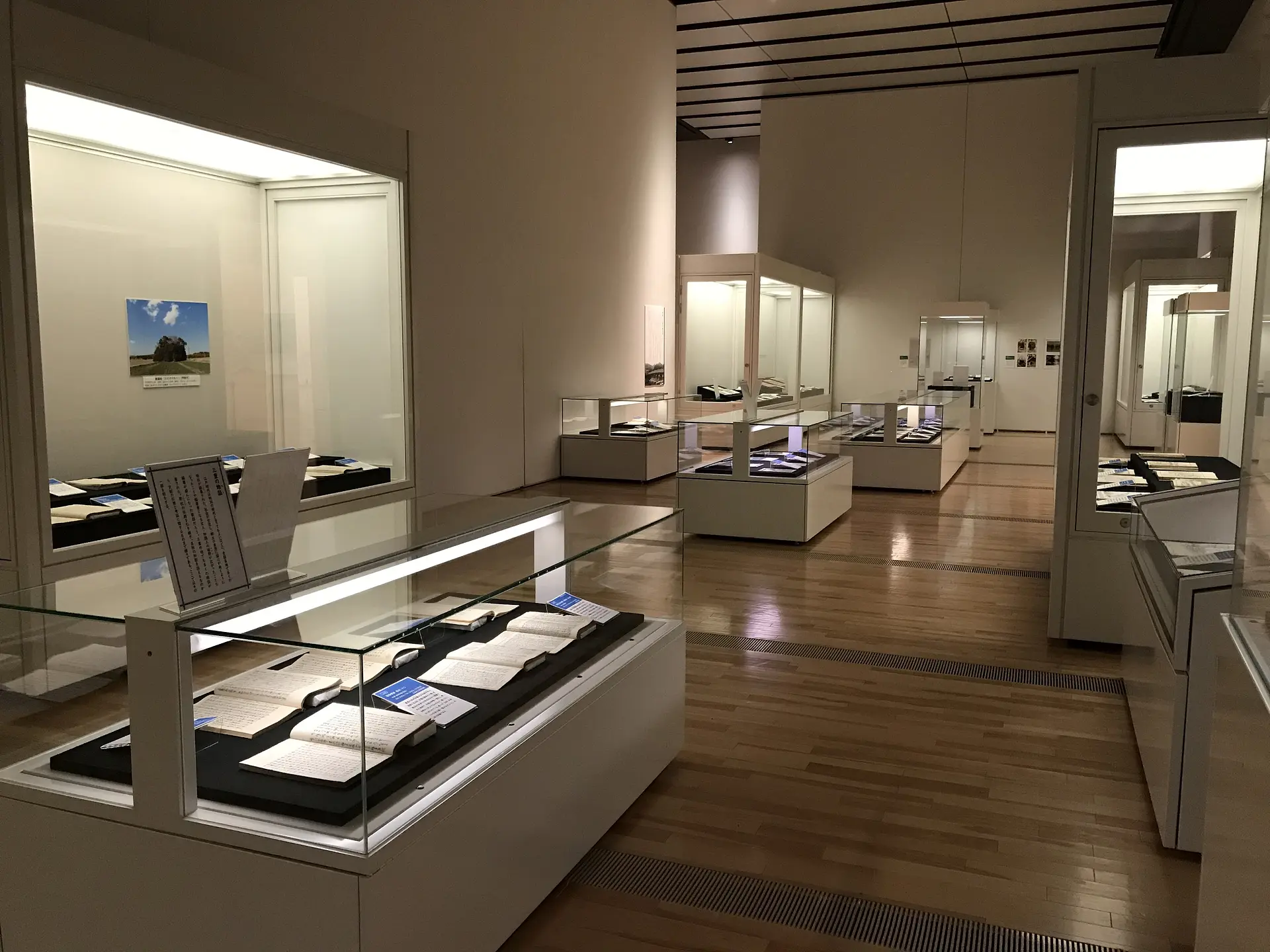 展示室は古い歴史資料の劣化を防ぐため薄暗くなっていて写真撮影は禁止されていますが、展示室の概観を撮影して写真を紹介記事に利用する目的で特別に博物館の許可を頂きました。同様に、三重県総合博物館の収蔵品に限り許可を頂いて撮影しています。