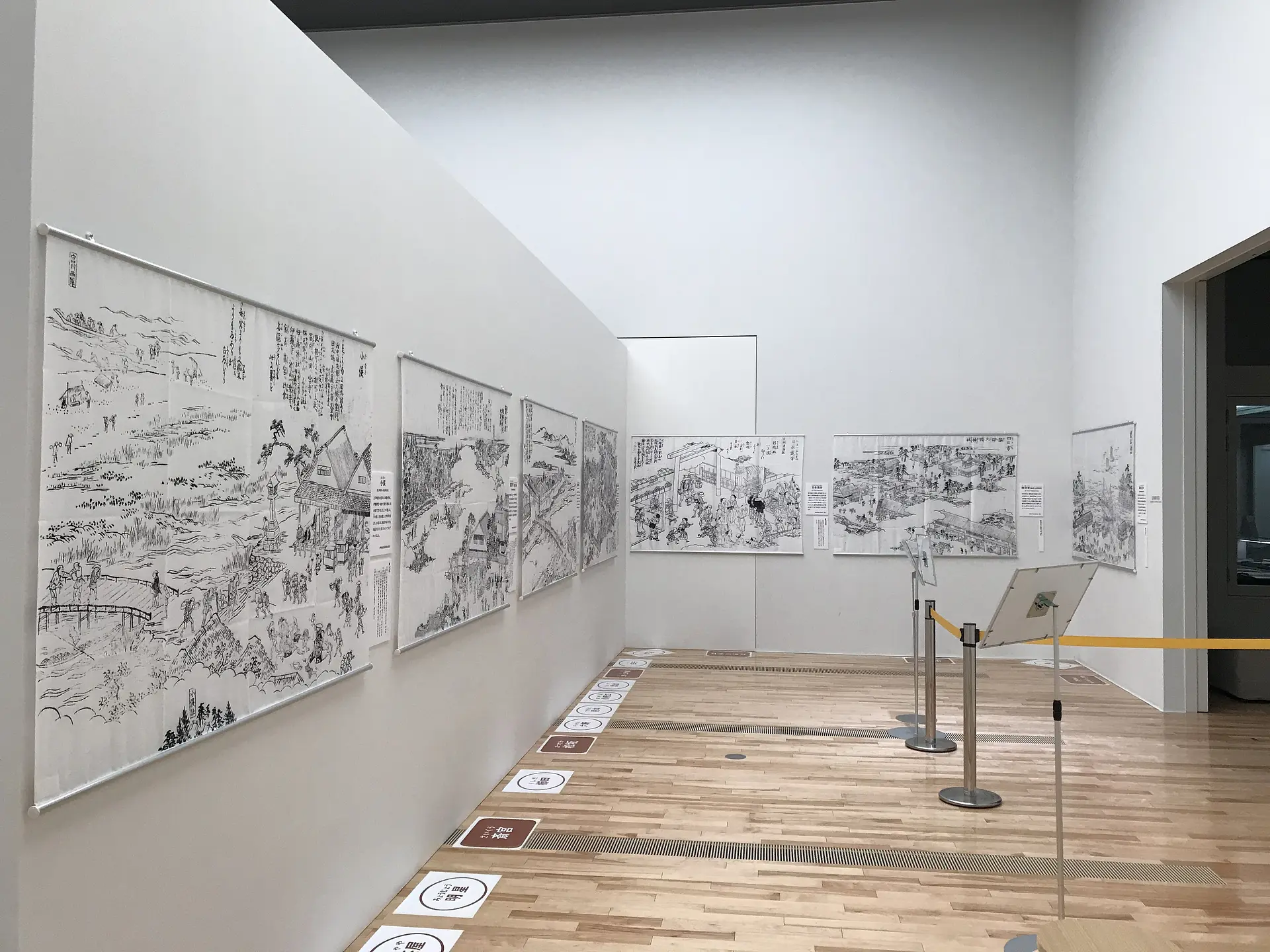 休憩コーナーには拡大された伊勢参宮名所図会のパネルがあり、細かいところまでじっくり観ることができます。