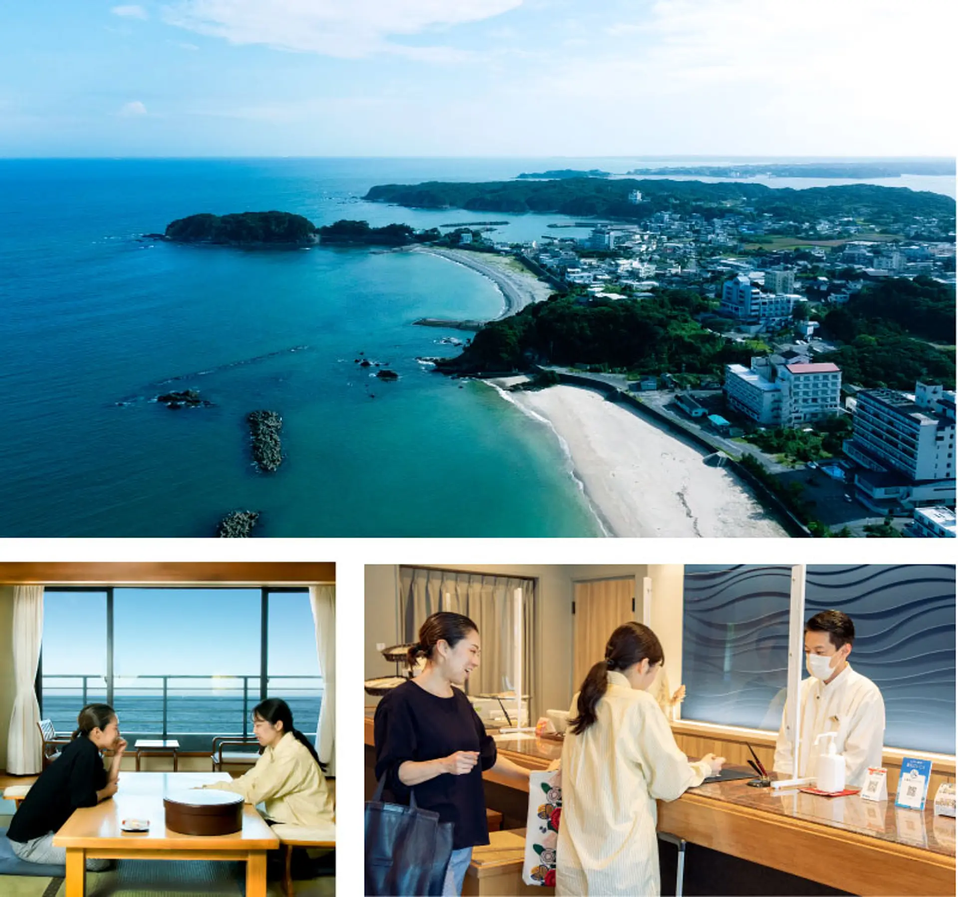 浜の雅亭 一井は三重県鳥羽市相差町(おうさつちょう)、自然に囲まれた閑静な場所に佇む、すべての部屋から絶景オーシャンビューを楽しめる48室の旅館。2021年夏に新しい経営体制となり、再出発をしました。