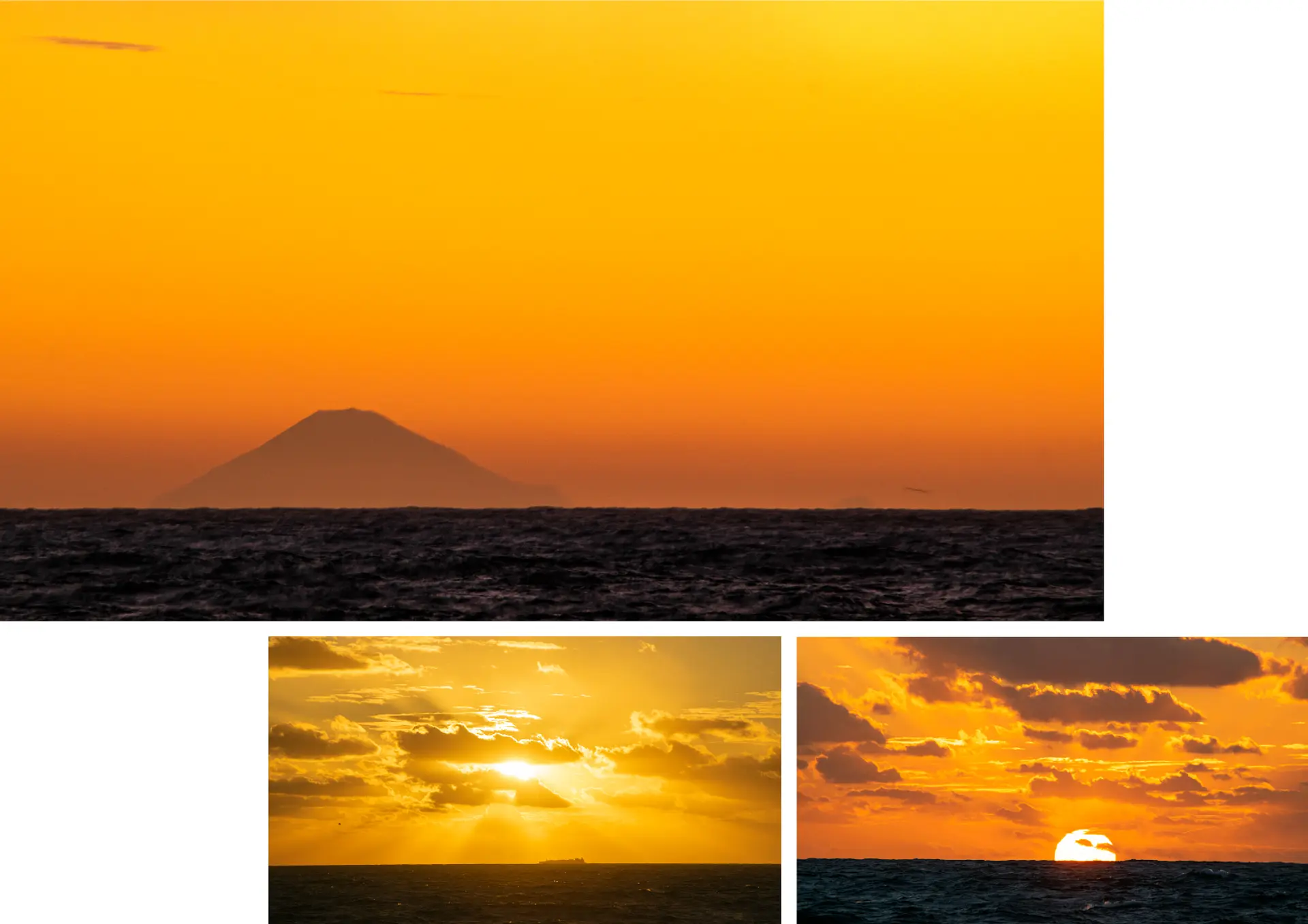 朝、少しずつ空がオレンジ色に染まり、太陽が顔を出します。天気が良ければ日の出と一緒に富士山が見えることも。ぜひ早起きして見たい景色ですね!