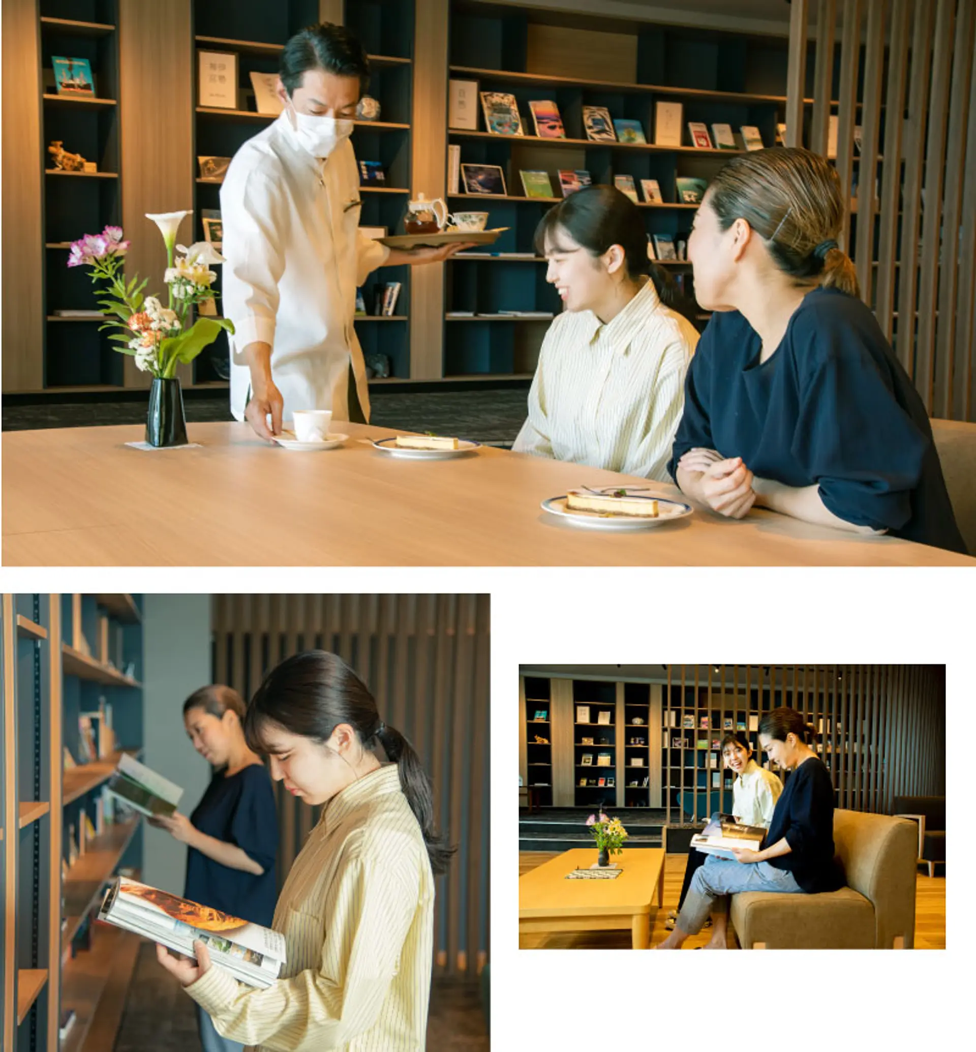 ラウンジの一角、三重県に所縁のある本を数多く揃えたライブラリースペースには、伊勢志摩の自然・歴史・文化など、地域の魅力を伝える本がずらりと並んでいます。ぜひお気に入りの1冊を探してみてください。