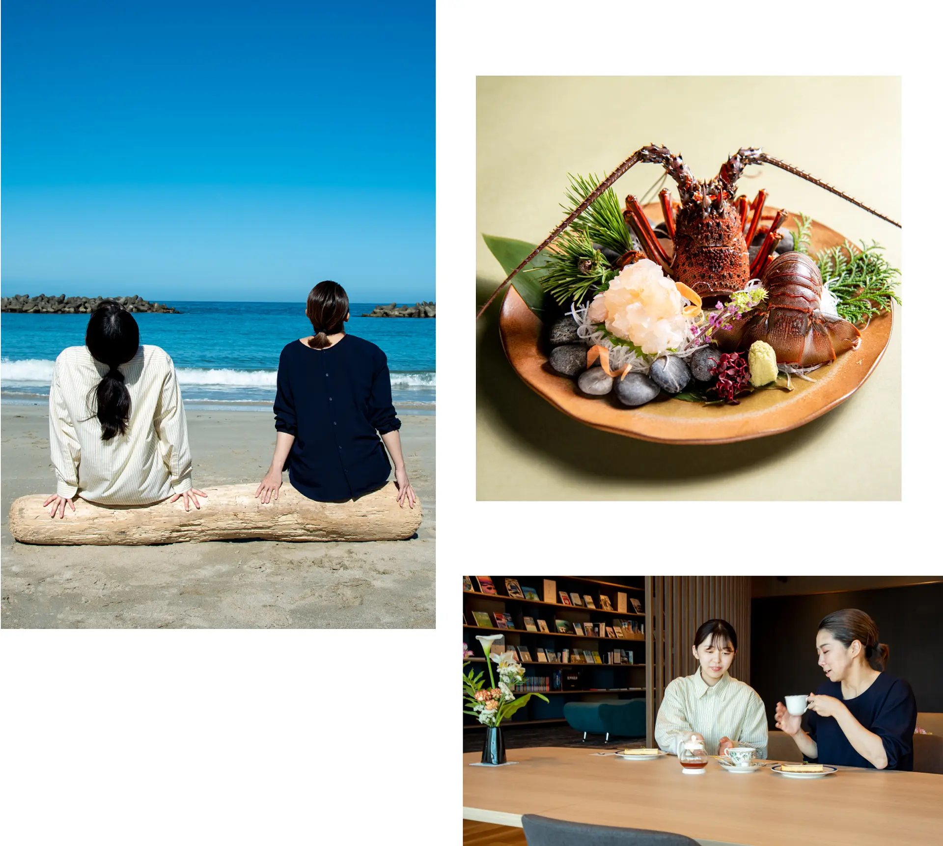 海を一望できる露天風呂つきのお部屋や、2021年冬にリニューアルしたロビーラウンジ、ライブラリースペース、季節を感じる日本料理などが楽しめます。伊勢志摩の魅力とあわせて、旅館ならではの日本文化を体験できます。