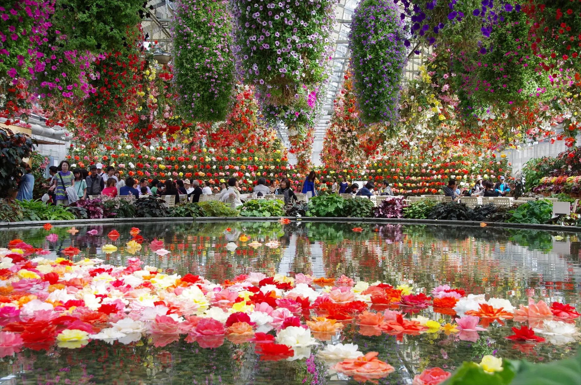 まずはベゴニアガーデンの入り口から入ってすぐのたくさんのベゴニアたち。色鮮やかさとその数にいつも圧倒され「おお!」となります。