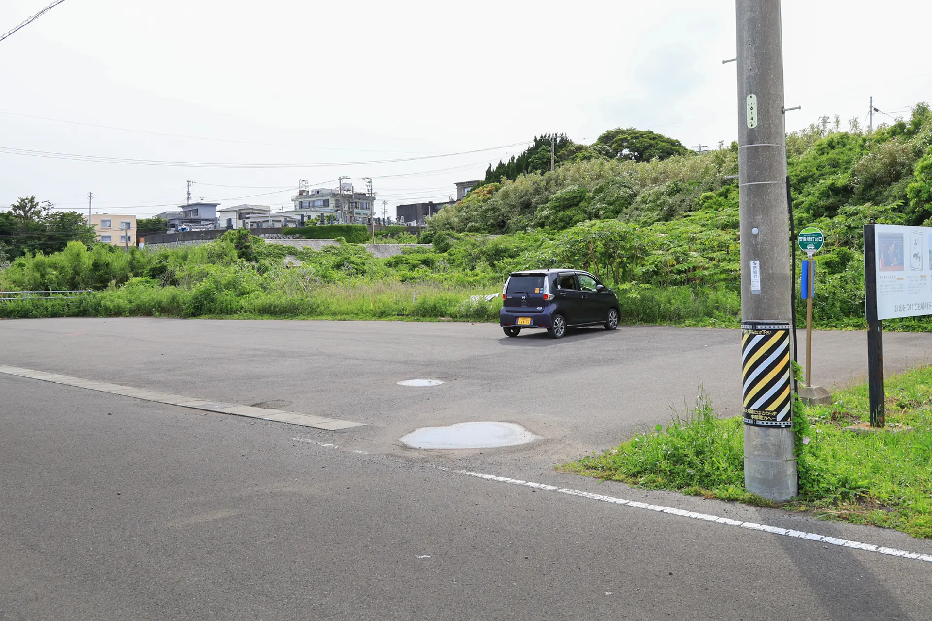 軽自動車なら10台ほど駐車できる広さで、ここから灯台まで徒歩15分ほどの距離です。