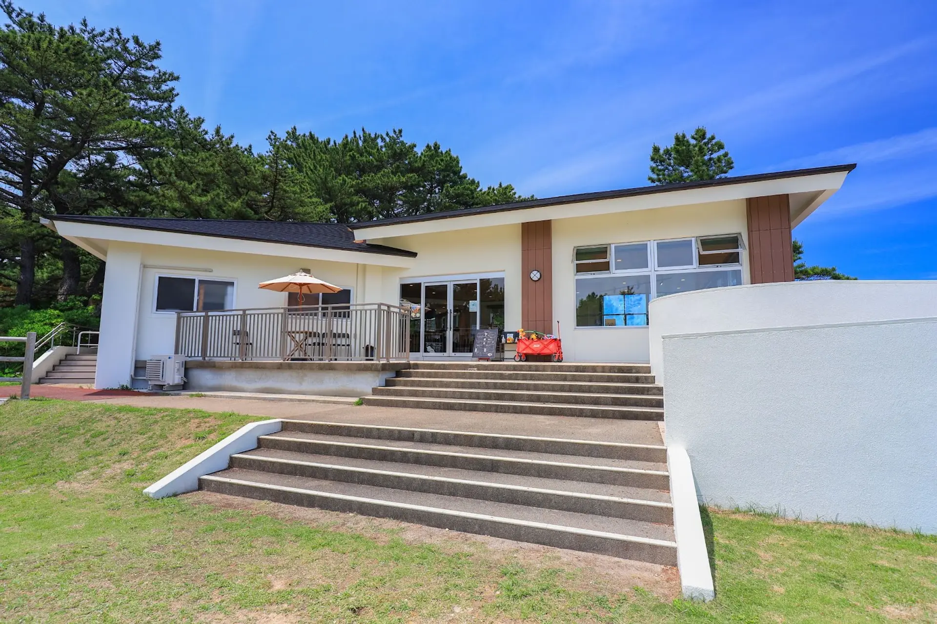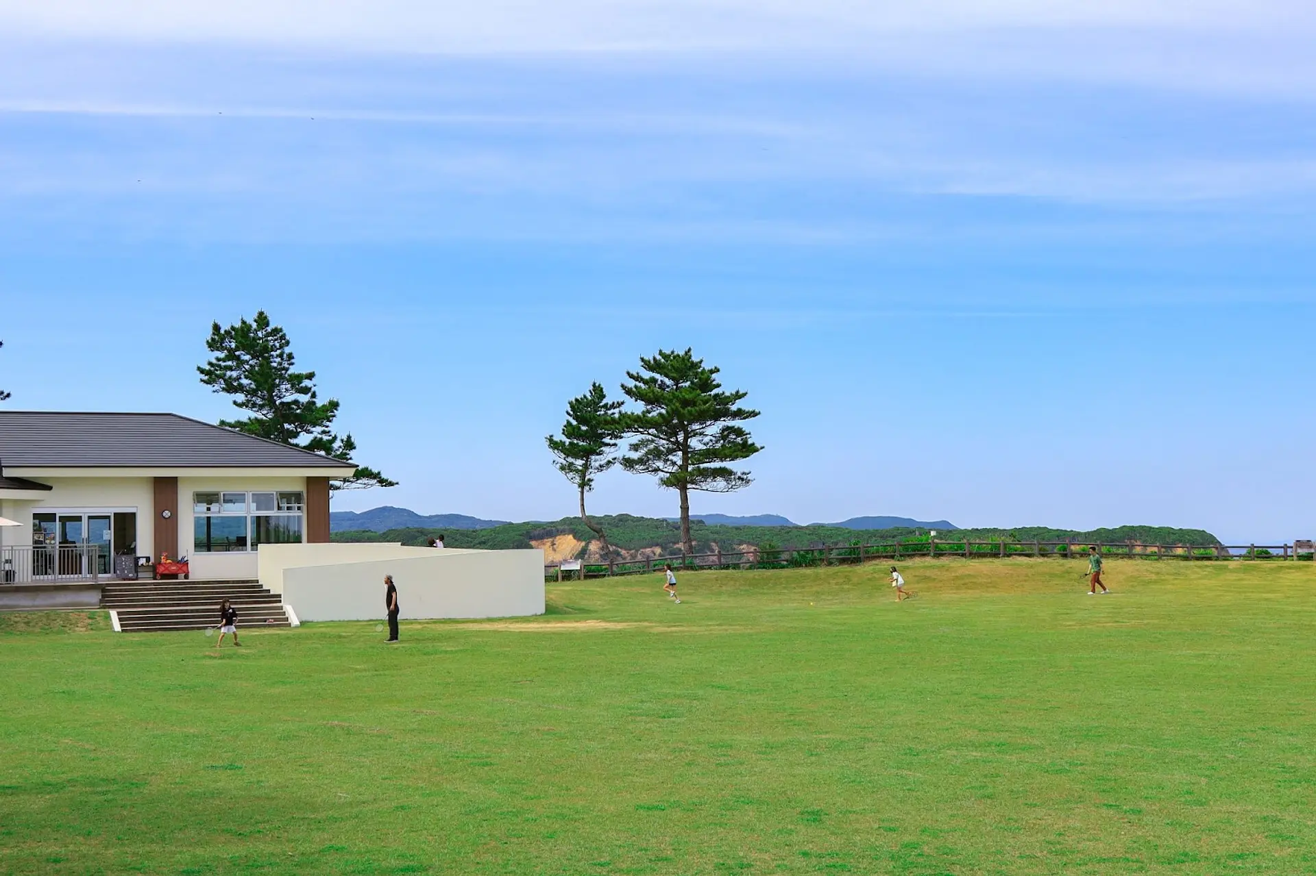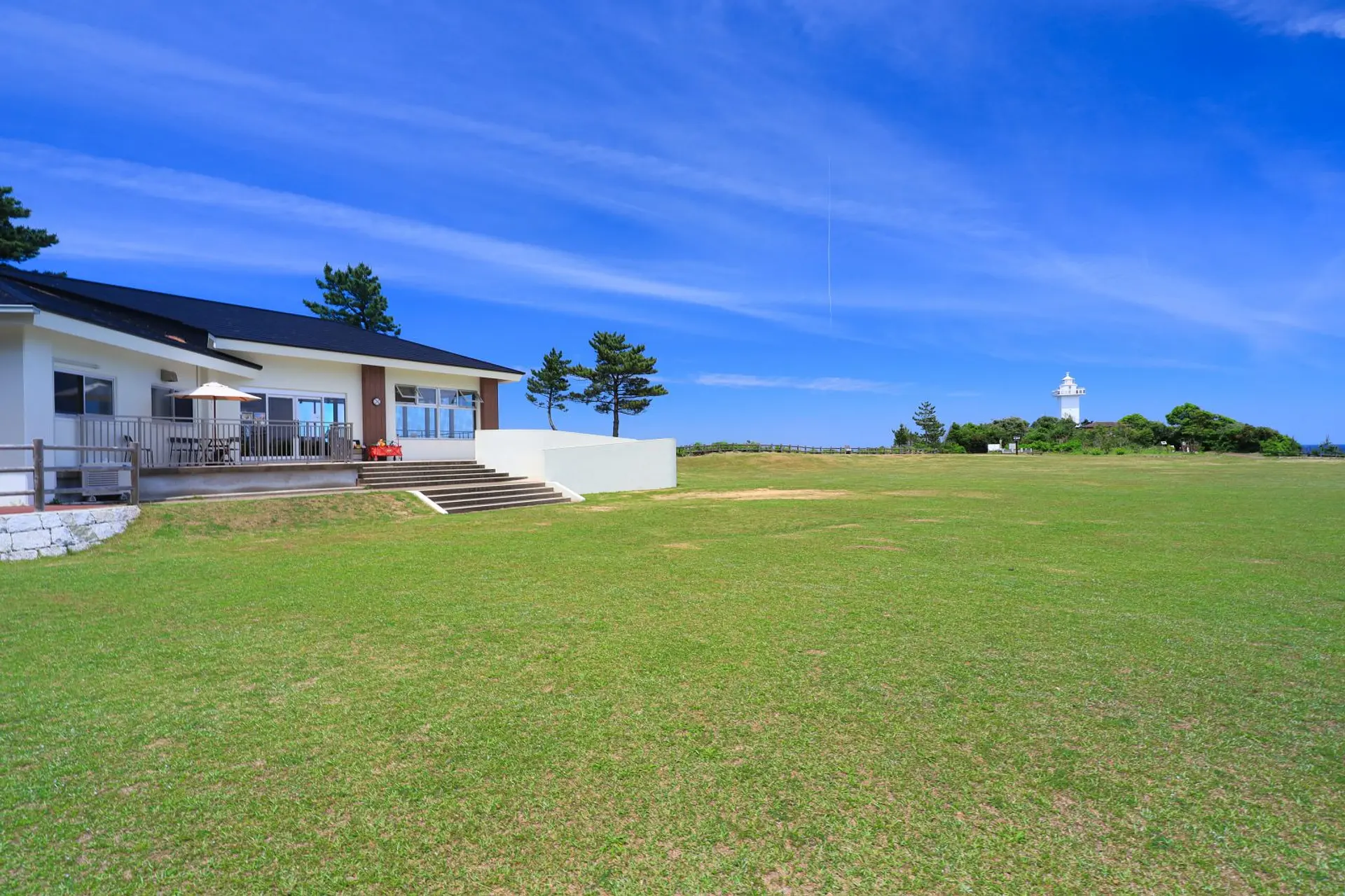 安乗埼灯台の手前にある安乗岬園地には広大な芝生広場があり、園内には「灯台カフェ」が併設されています。