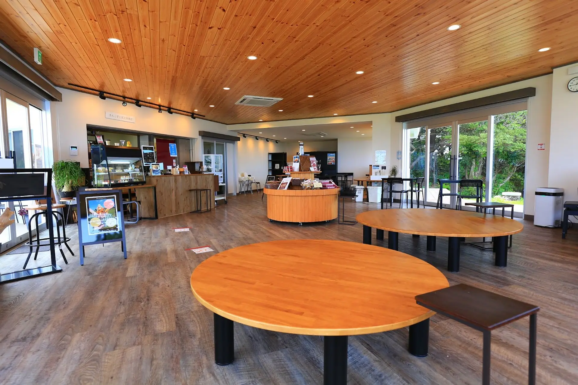 こちらが灯台カフェの店内。吹き抜けで広々としており、木の温もりも感じるオシャレな雰囲気はデートにもピッタリなロケーション♫