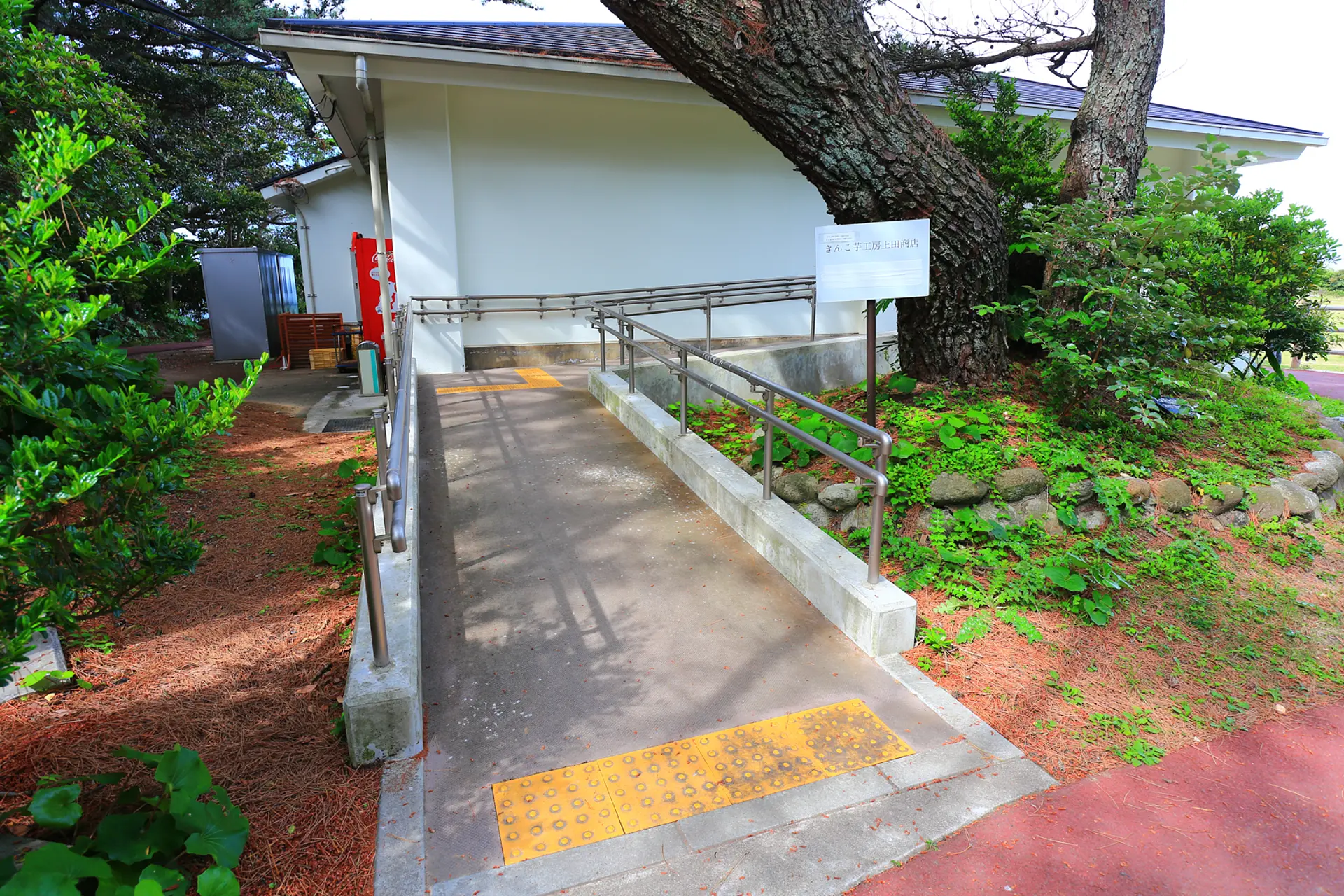 灯台カフェまでの通路にはスロープが設置されているので、車椅子の方でも店内でお食事を楽しめます。