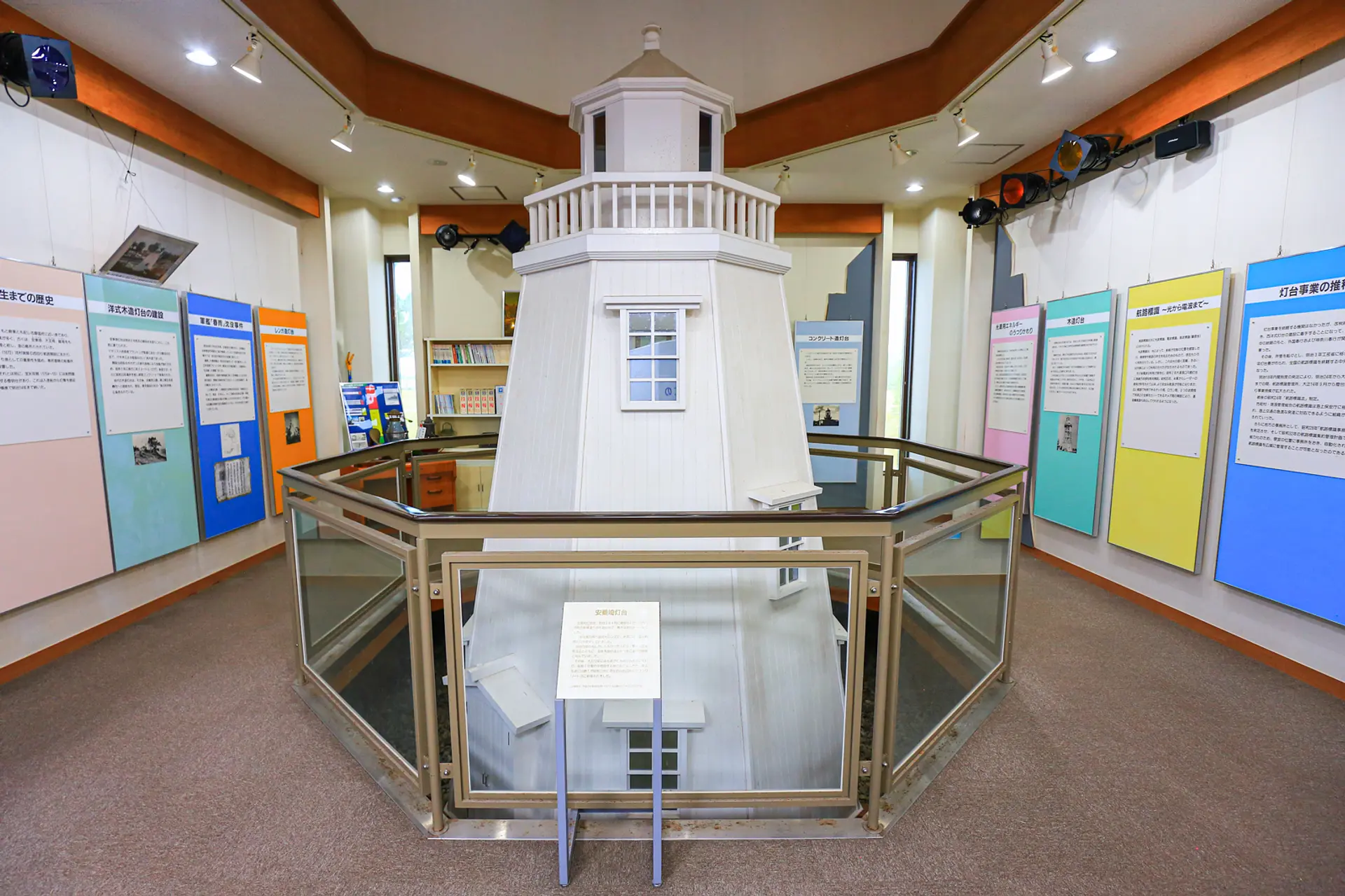 上記写真は木造の安乗埼灯台を1/3スケールにした模型で、最寄りの「安乗埼灯台資料館」に展示されています。