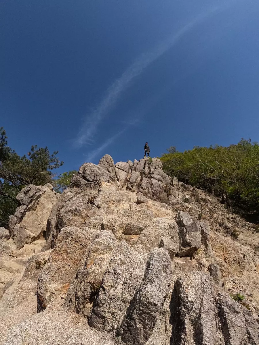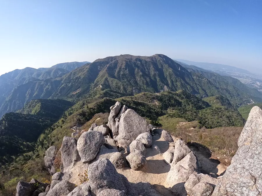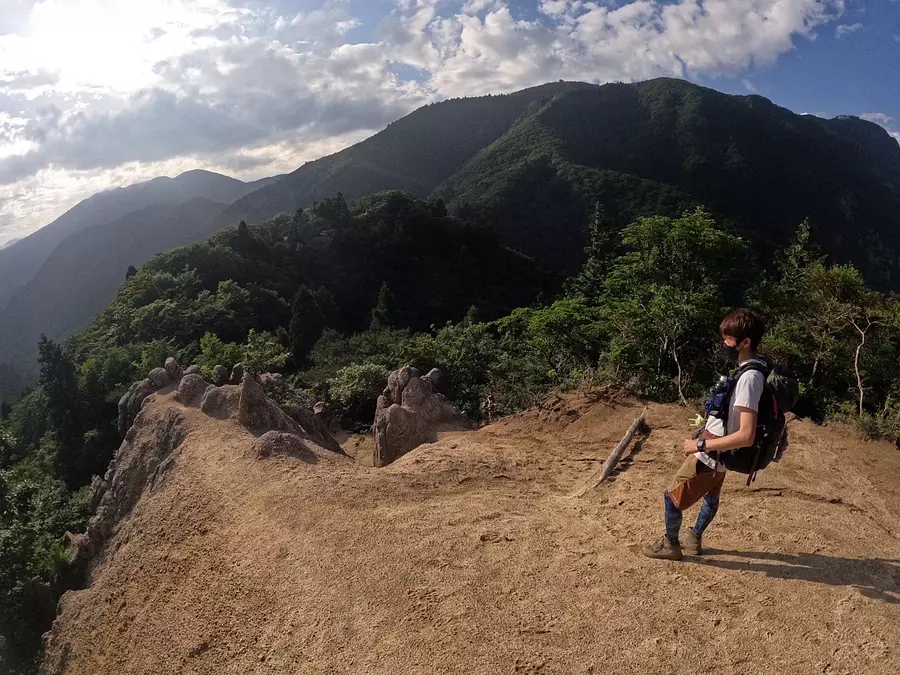 花崗岩がゴツゴツとむき出しになっているポイントが随所にあり、足場が悪いところが多いです。奥に見える山はお隣の「御在所岳」。足元を注意しつつ、絶景も堪能していきましょう!
