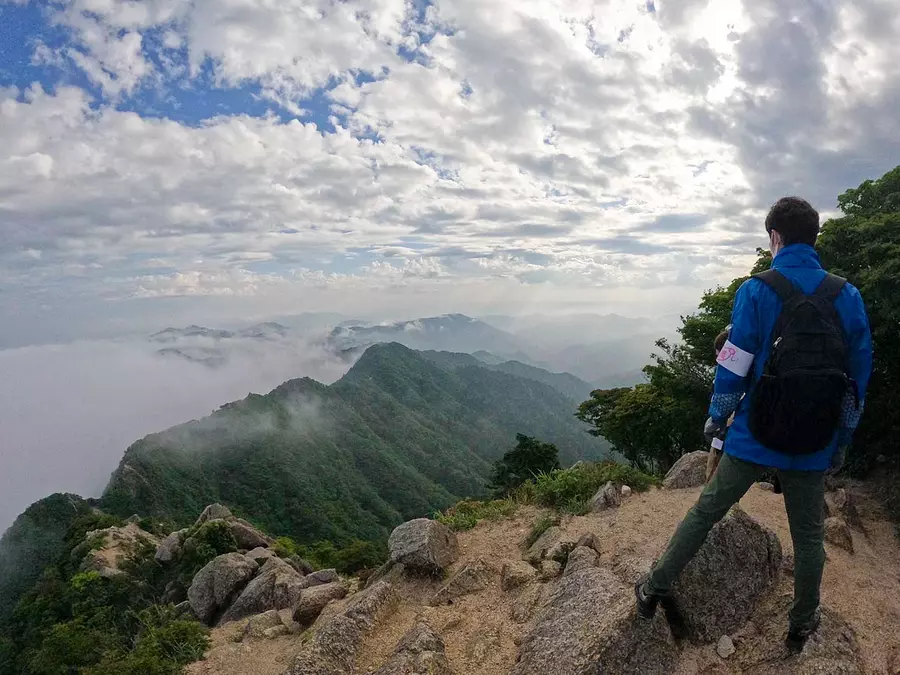 登頂目前の一行を歓迎するかのように霧が晴れ、壮大な景色が広がっていました!疲れを感じさせず佇むよしお兄さんの後ろ姿がとてもカッコよかったです…!!