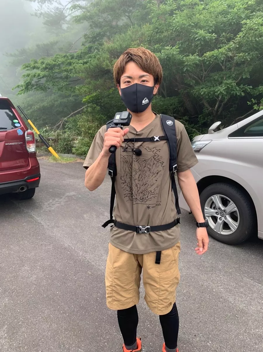 登山スタイルに身を包み、ピンマイクをセットしていかにも撮影!って感じがしてテンション上がりました^^いよいよ出発です!