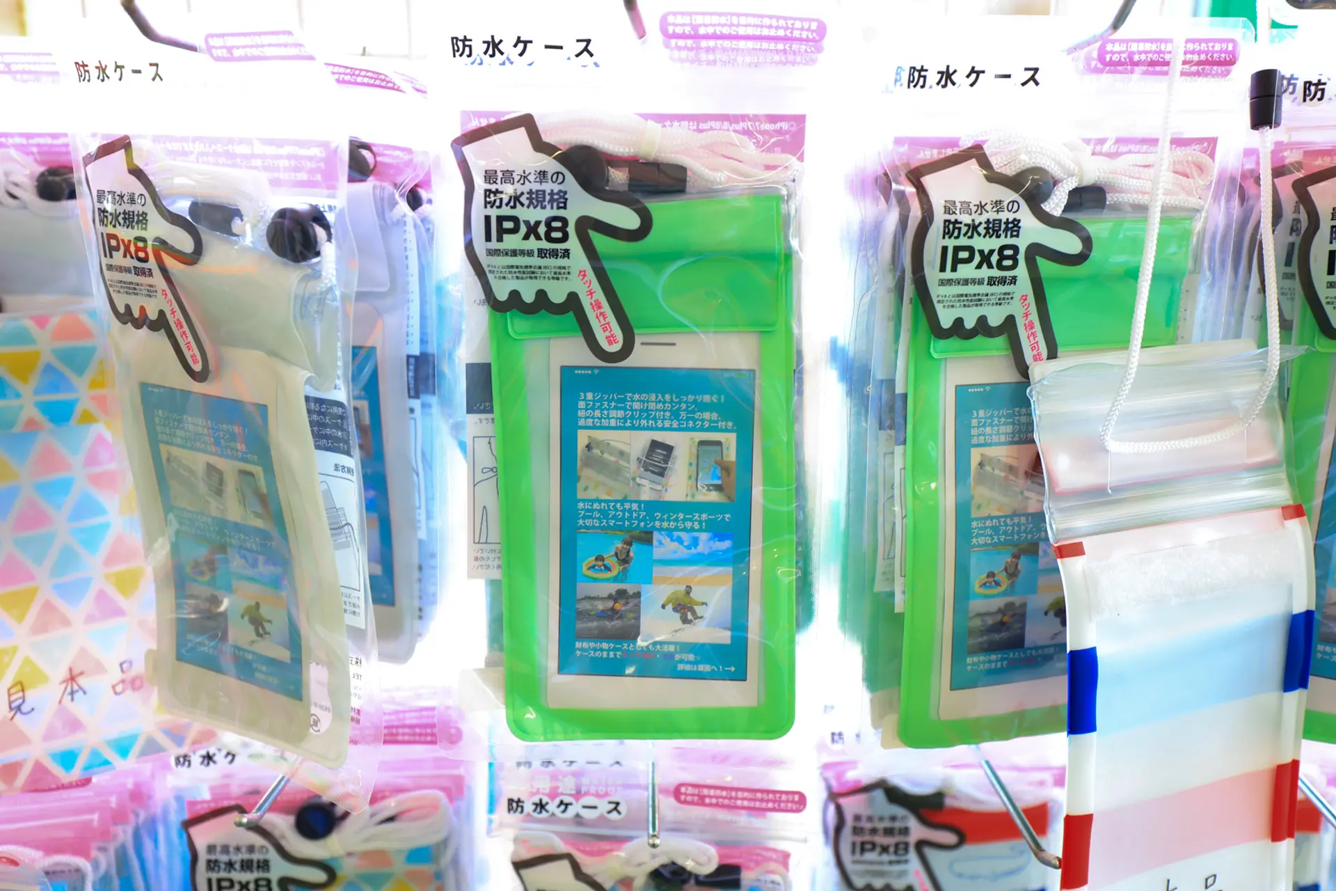 プールのショップにはスマホの防水ケースが販売されているので、防水機能がないスマホの方はこれを購入すれば安心です。