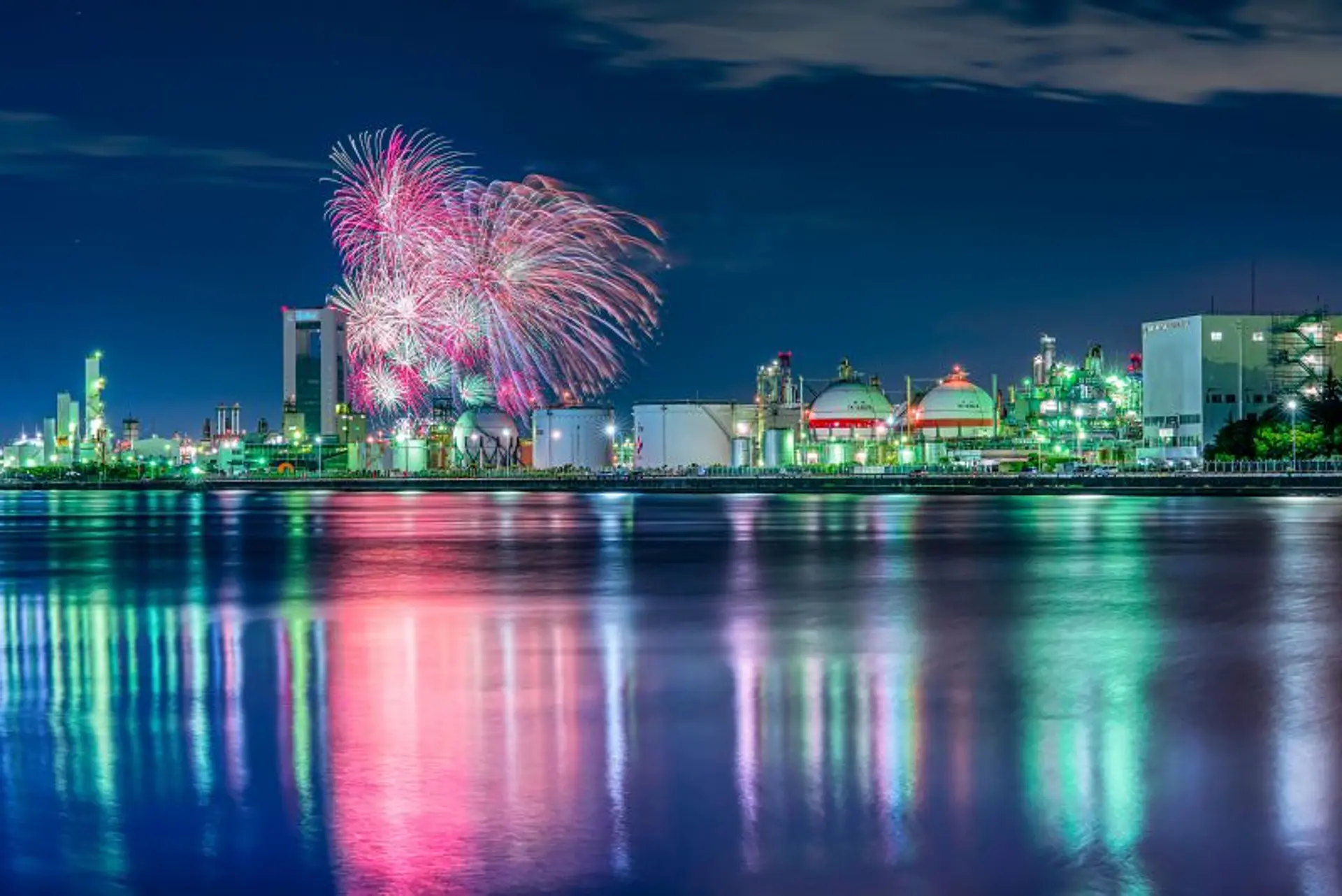 さらに、光の絶景で有名な四日市コンビナートの夜景との組み合わせは四日市花火大会ならでは!平成30年度には「四日市・いなばポートライン」が開通し、こちらもインスタ映えするスポットとして人気上昇中です。花火とポートラインの組み合わせもカメラに収めたくなりますね♪