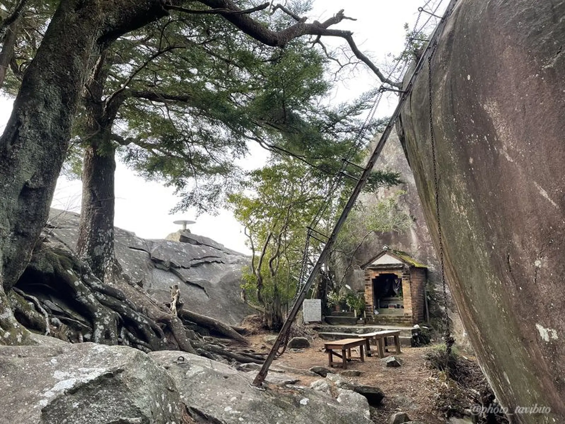 頂上近くには、修験道の開祖である『役行者(えんのぎょうじゃ)』を祀った石碑や祠(ほこら)があり、今もなお続く山岳信仰の一端を垣間見れます。