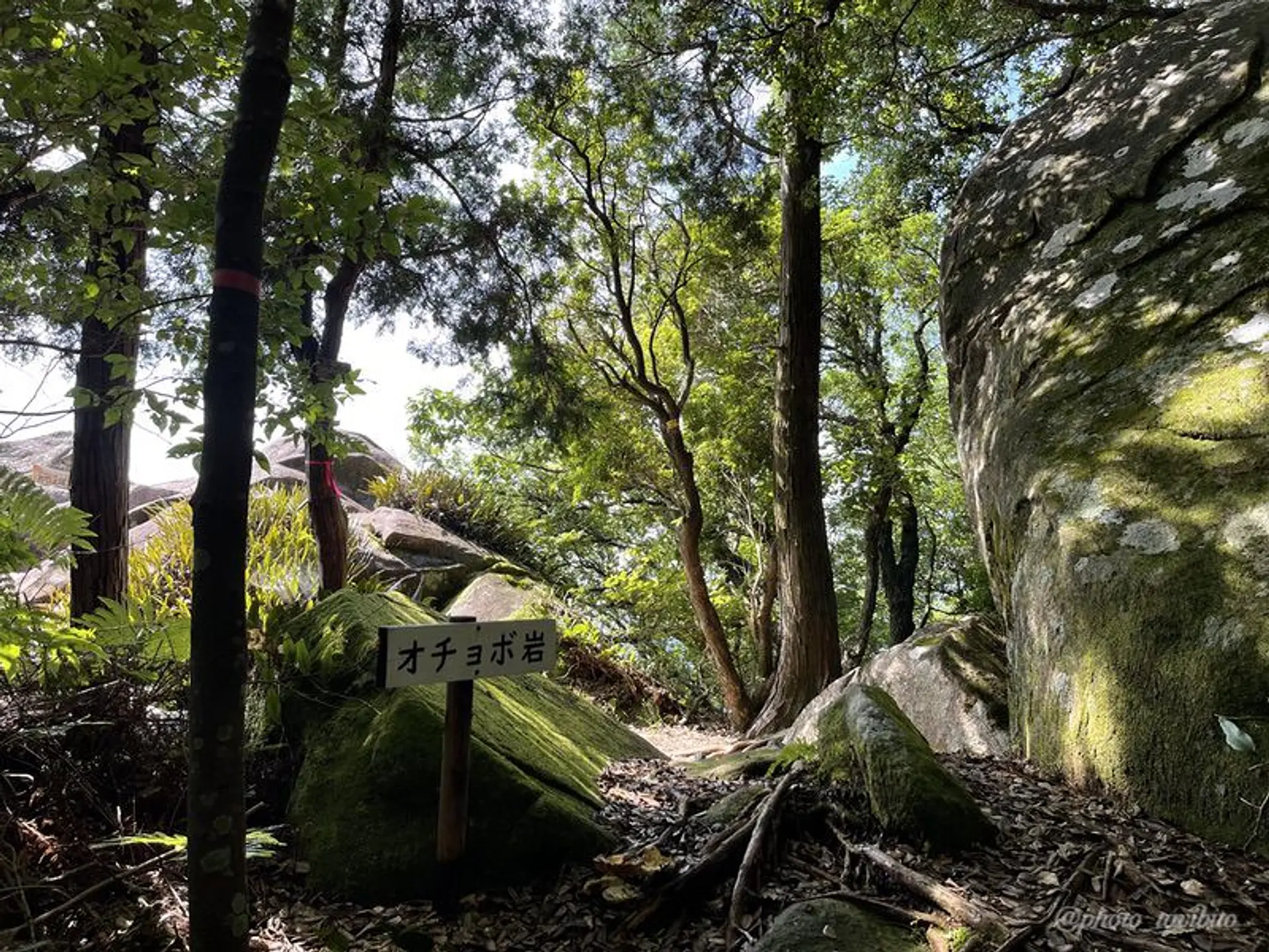 天狗倉山から東に続く尾根を辿っていくと、魅力2つ目の『おちょぼ岩』に辿り着きます。