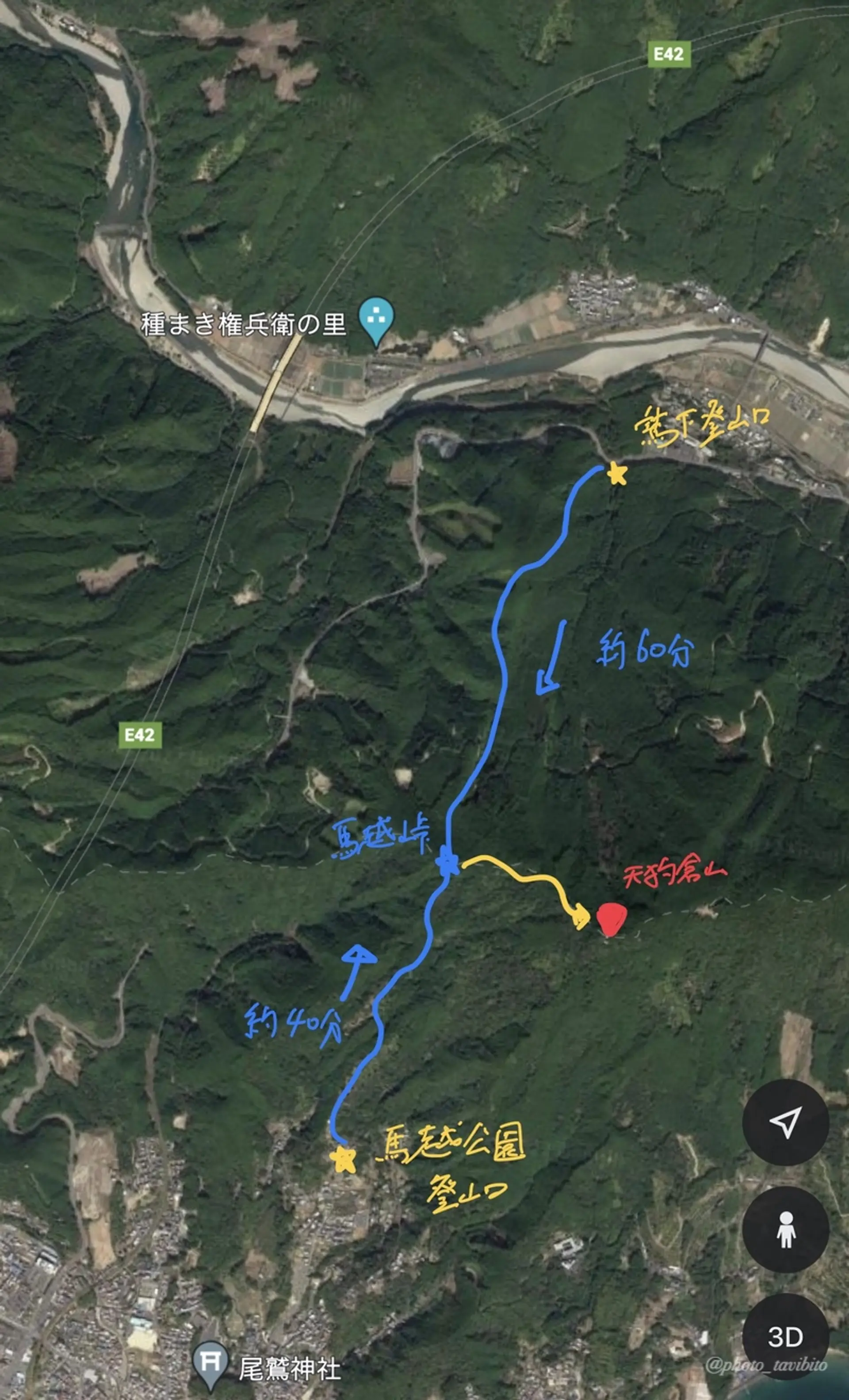 地図はだいたいの位置と時間を表記してますが、馬越公園側(写真図下側)から登ると約40分、鷲下側(写真図上側)からなら約60分と、時間がかかるのは鷲下登山口からのルートなのですが…