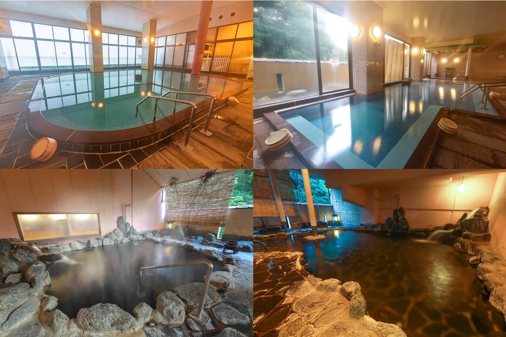 広々とした大浴場や、ファミリーやカップルにおすすめの貸切展望露天風呂、源泉かけ流しを楽しめる施設など、種類豊富なのも魅力です。
