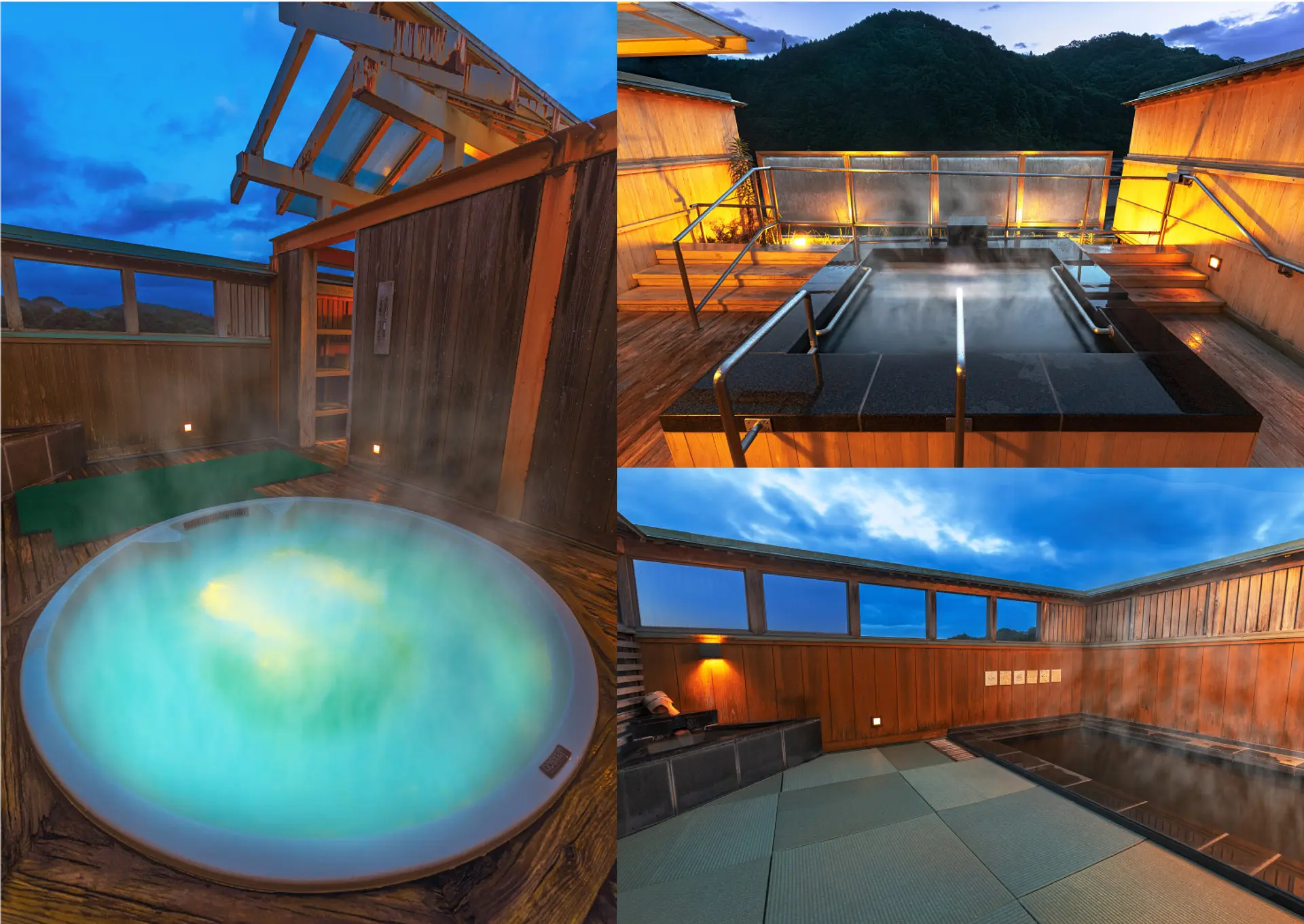 さらに、3つの貸切展望露天風呂もあり、1グループ3000円の追加料金で楽しむことができます。