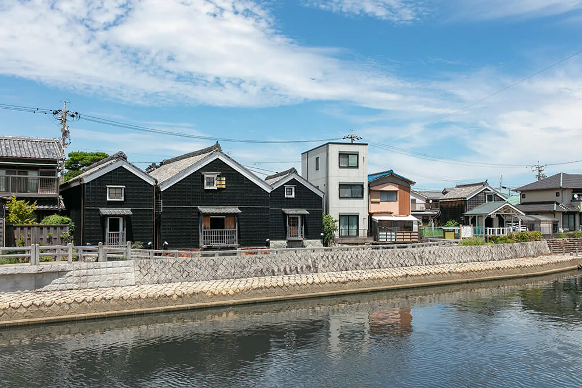 お伊勢参りを支えてきた河崎のまちは、切妻妻入りという特徴ある造りの町家が川の両岸に並び、今も江戸時代からの風情ある街並みが残っています。