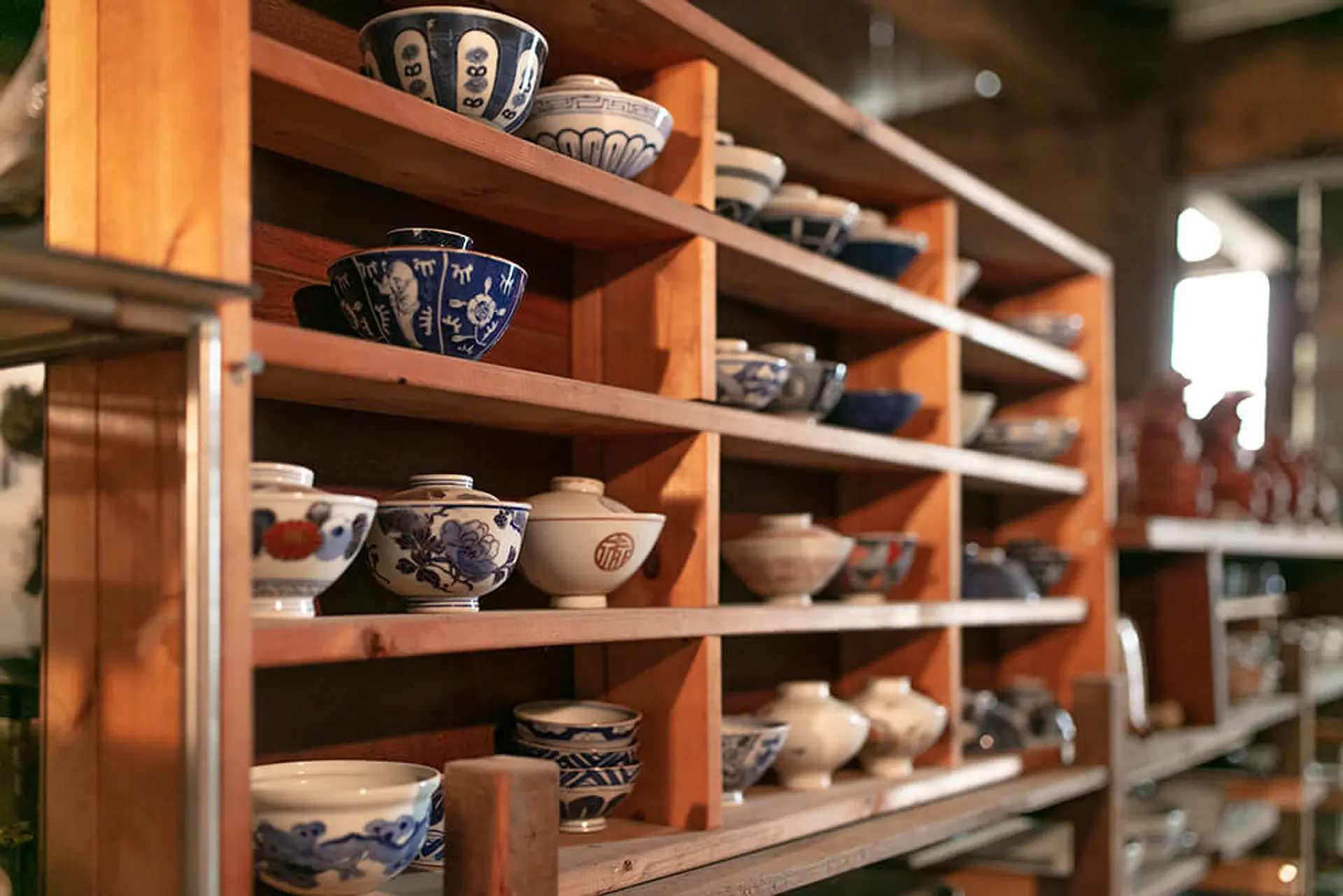 江戸時代から続く老舗陶器問屋。店内にはかつて荷運びに活用されたトロッコレールが残っています。伊勢まちかど博物館運営委員会指定の「まちかど博物館」でもあり、江戸時代から保管されている展示品にも注目です。