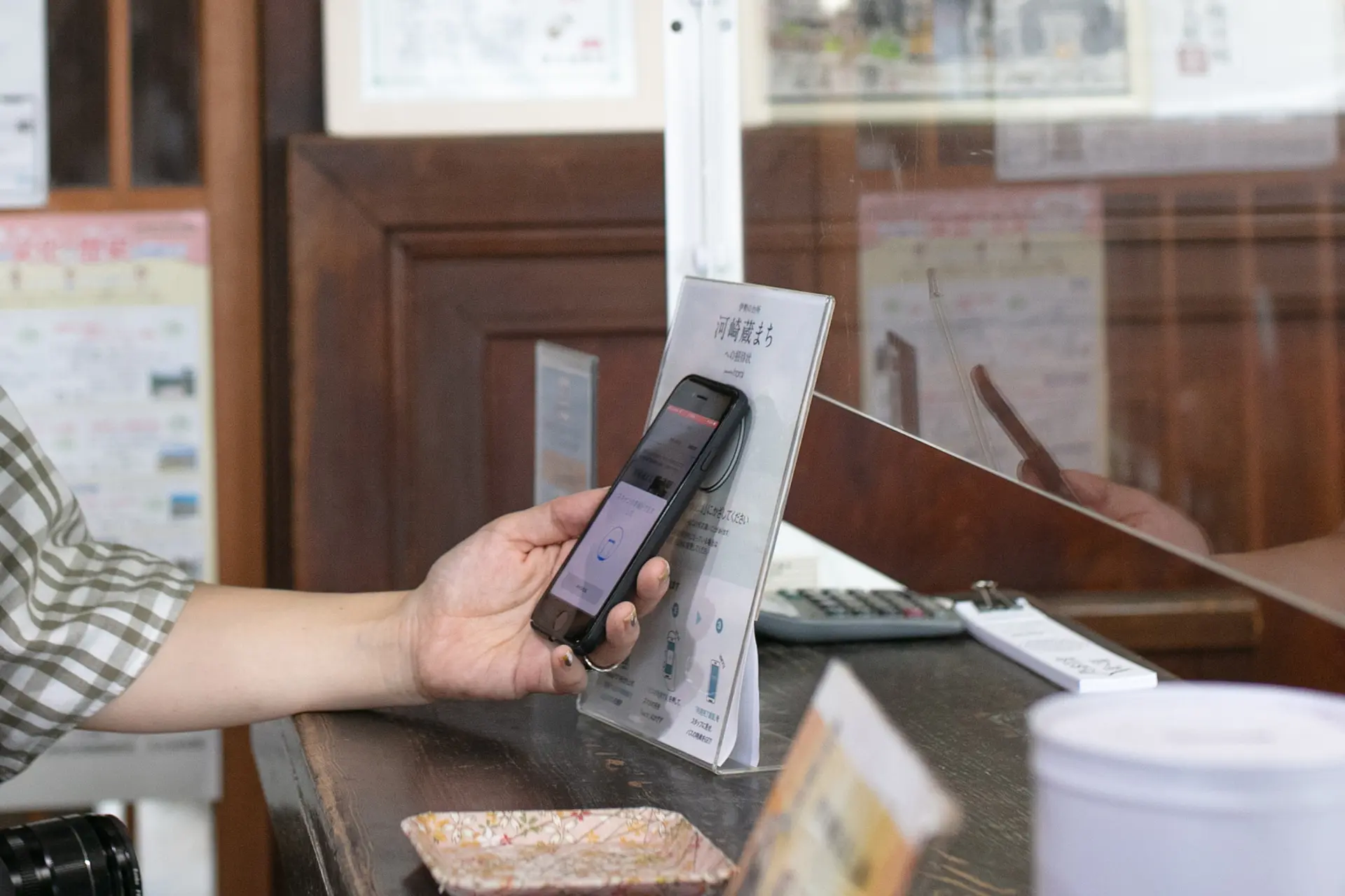 5. クーポン利用可能な店舗・施設にて、専用読み取り機にスマートフォンをかざします