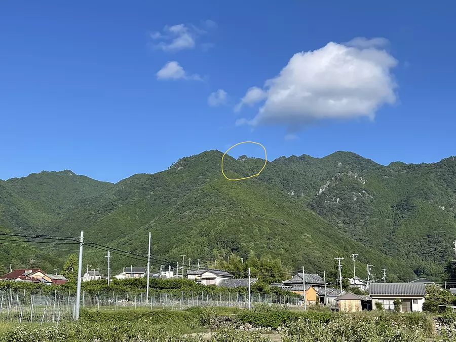 この神木地区から見える山々の一つに、今回紹介する『妙見山』が鎮座、しかも不思議な形をしてそびえ立っています。